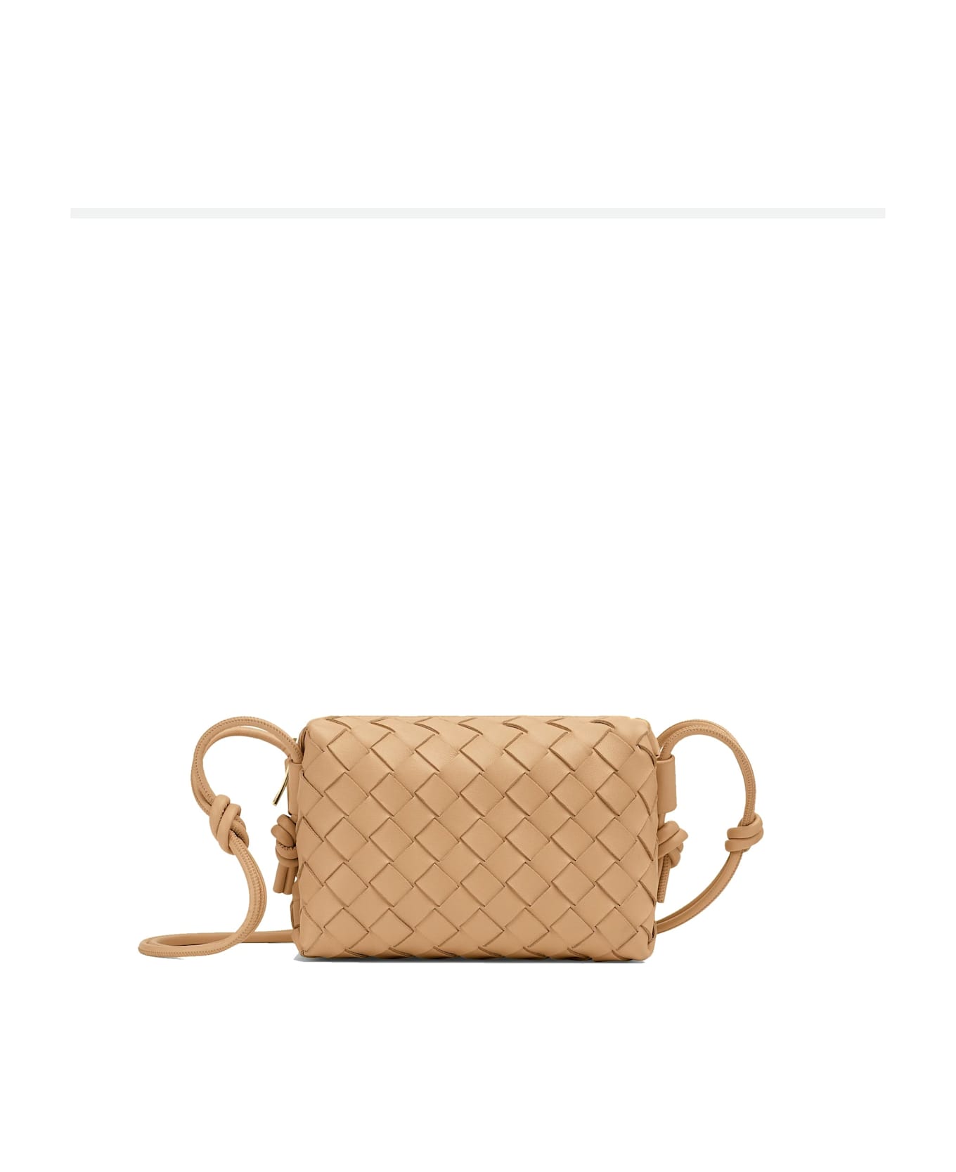 Composition: 100% Lamb Leather Top zip closure Non detachable shoulder strap One compartment Intrecciato weave Size: 11 x 17 x 6cm. Strap drop: 50cm. Made in Italy