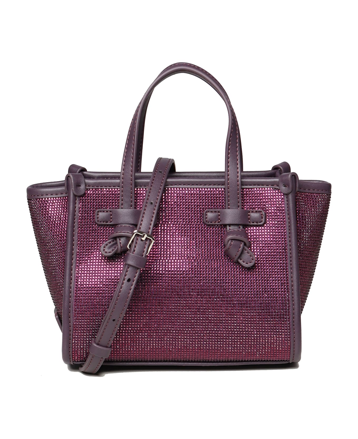 -Miss Marcella Bag made of fabric and rhinestones crystals -Zip closure -Adjustable leather shoulder strap -Measurements: 19x15x10 cm -Colour: Plum
