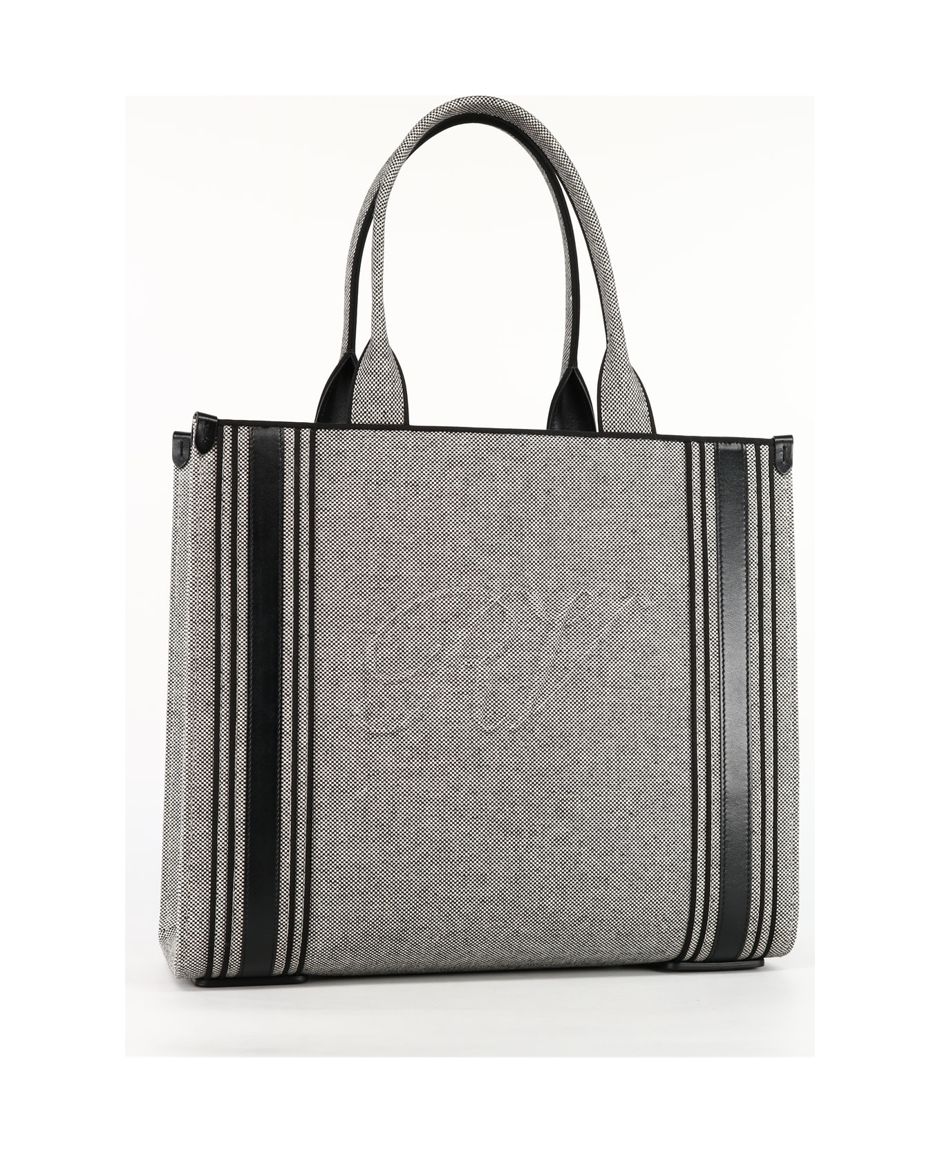 Shopping Call Me Viv' bag made of canvas with leather inserts and grosgrain details, characterized by the embossed macro RV logo. Iconic address embroidered on the side and postal card print on the inside leather pocket. 1 internal open pocket, 1 internal pocket with zip and postal card print, internal Roger Vivier logo.