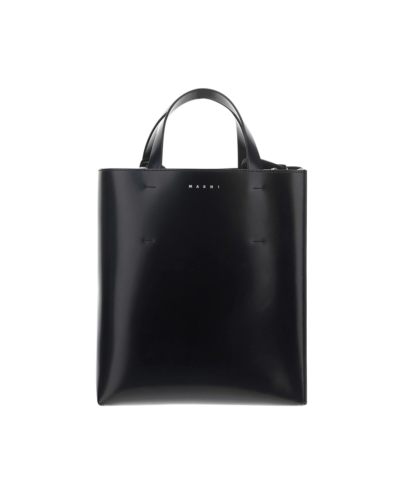 Calfskin shopping bag by marni, single open compartment, two rigid top handles, interior zippered welt pocket, removable and adjustable shoulder strap, iconic brand monogram printed in contrasting pressure on the front. Composition: 100% % Calf Leather Bos Taurus Composition: 100 Af