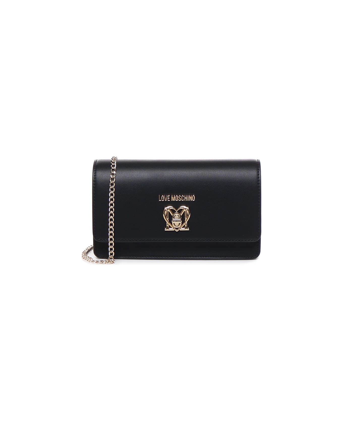 Black Shoulder Bag With Logo from Love Moschino -Shoulder bag with gold-tone loco plaque -Chain shoulder strap -Flap at the top -Divided internal compartment -Measurements: 22x11x6. 5 cm -Colour: Black -100% Polyurethane