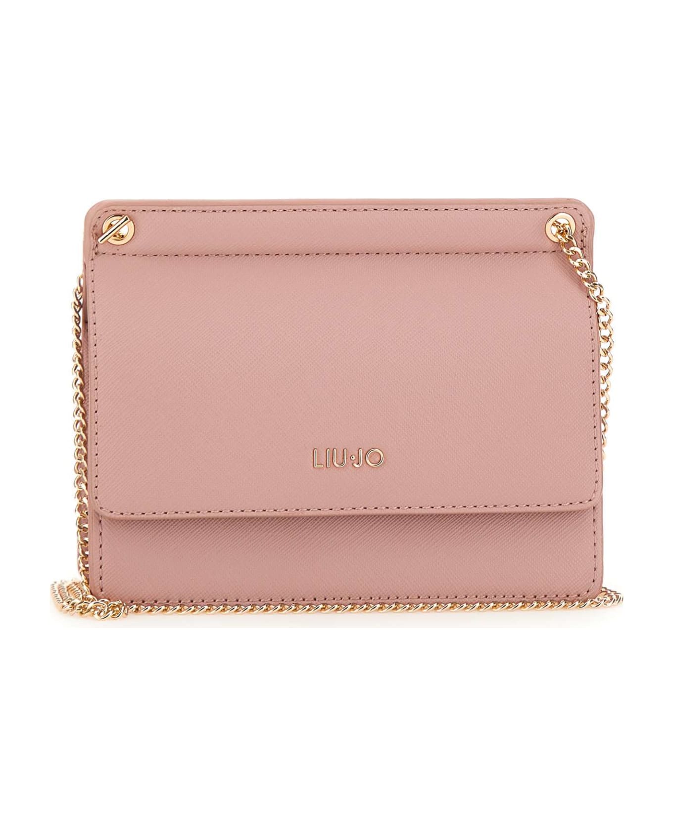 Liu-Jo "Caliwen" shoulder bag, eco-sustainable in pu, powder pink, square design, front metal logo, fastening with flap and magnetic button,fabric lining, inside pocket, thin metal shoulder strap 60 cm, gold finishes. Dimensions: height 13cm, length 19cm, depth 6cm.