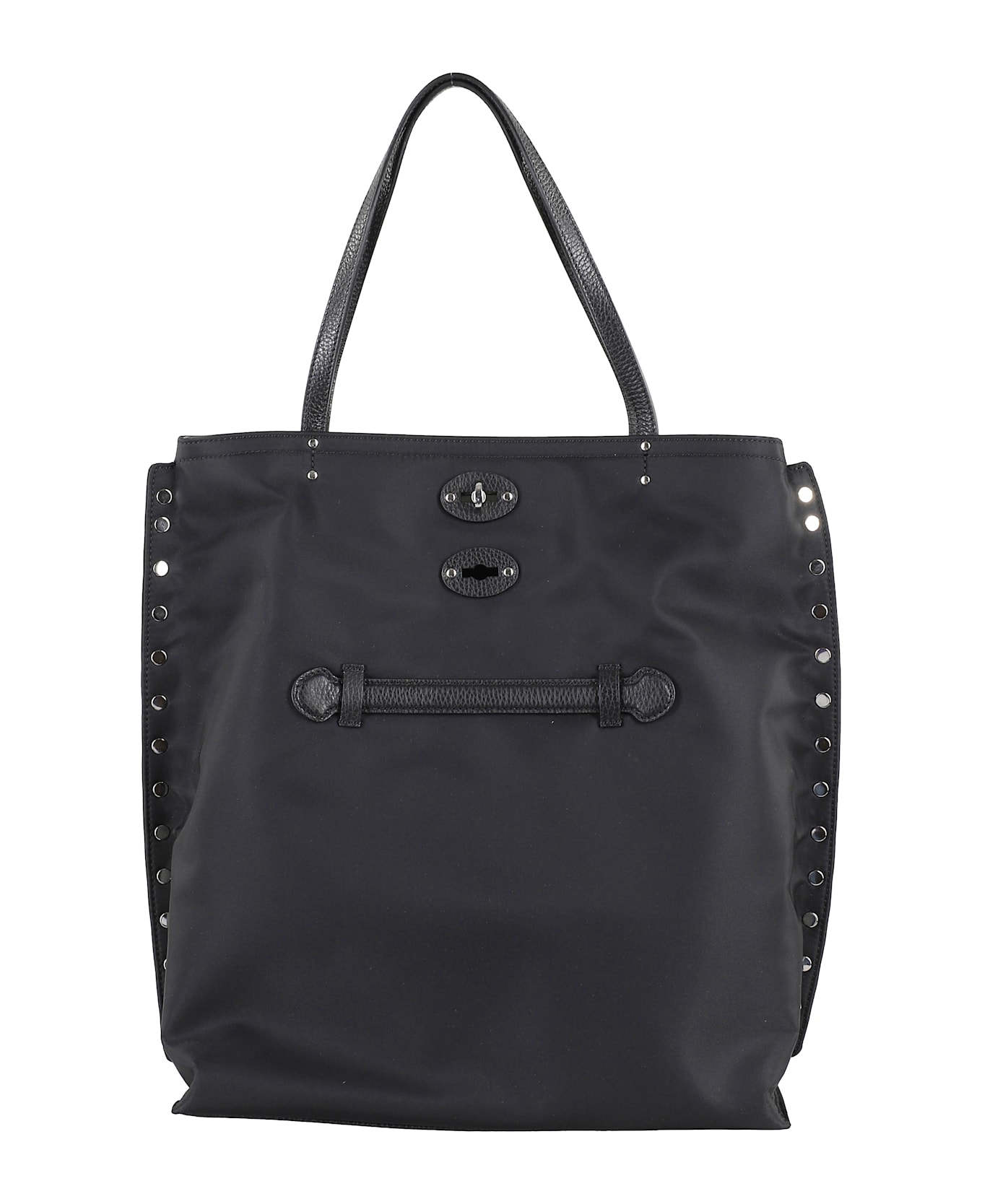 A Spasso Tokyo M bag - Zanellato - Black color - Made of nylon - Studded side applications - Leather side handle - Double leather top handle - Swivel closure - Dimensions: 41 x 47 x 13 cm