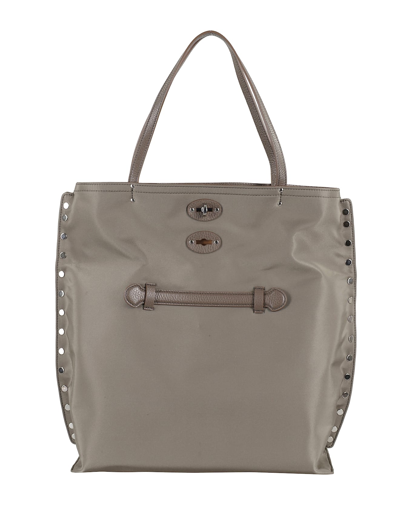 A Spasso Tokyo M bag - Zanellato - Green color - Made of nylon - Studded side applications - Leather side handle - Double leather top handle - Swivel closure - Dimensions: 41 x 47 x 13 cm