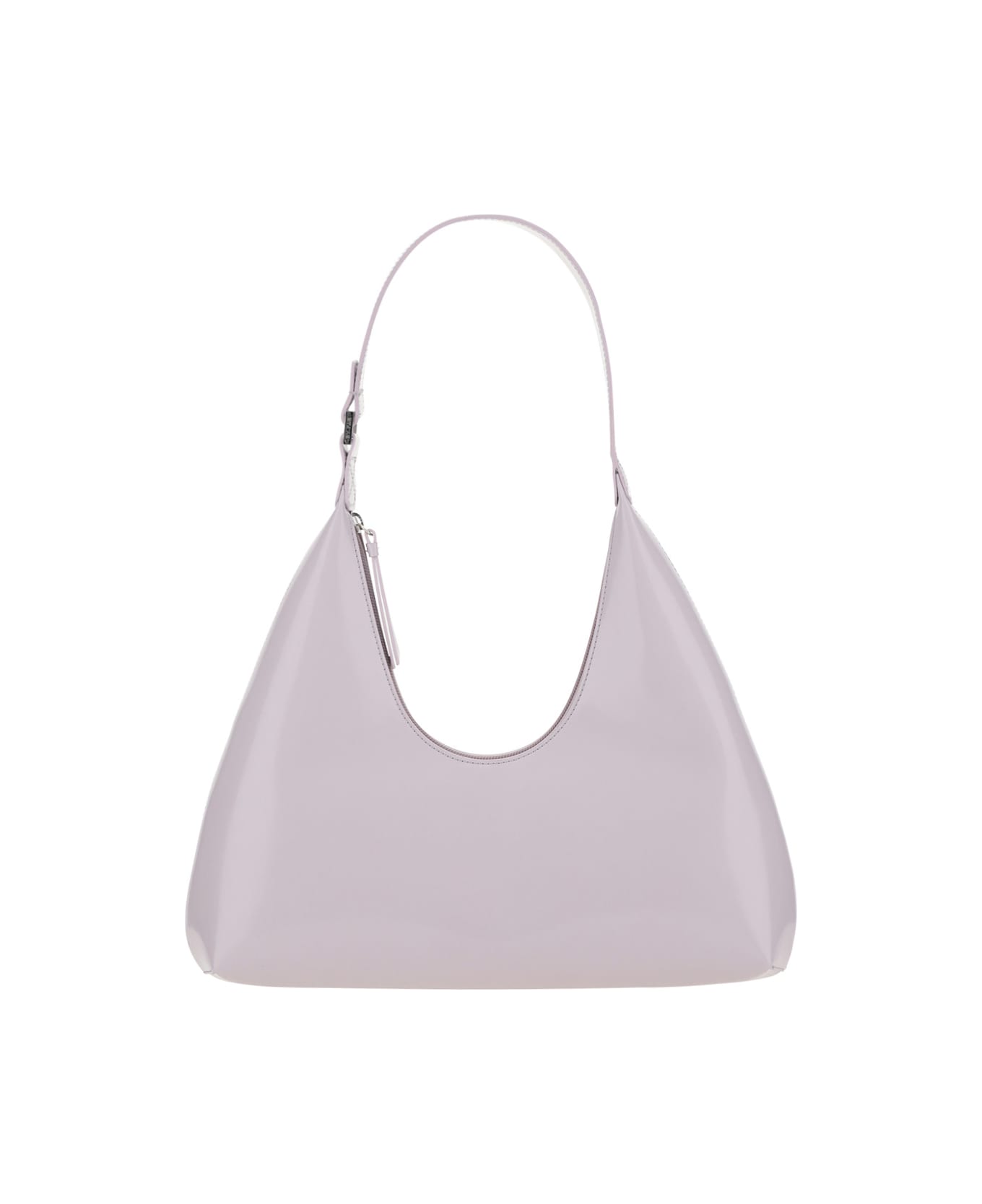 Calfskin amber shoulder bag by by far, top zipper closure, top slim handle, center slit compartment, interior welt pockets, smooth leather design, credit card compartment.