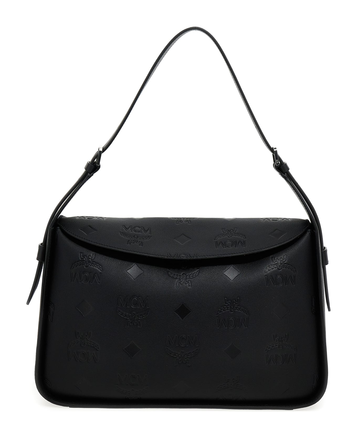 Aren' midi shoulder bag with all-over anagram, with adjustable handle and a zip closure.