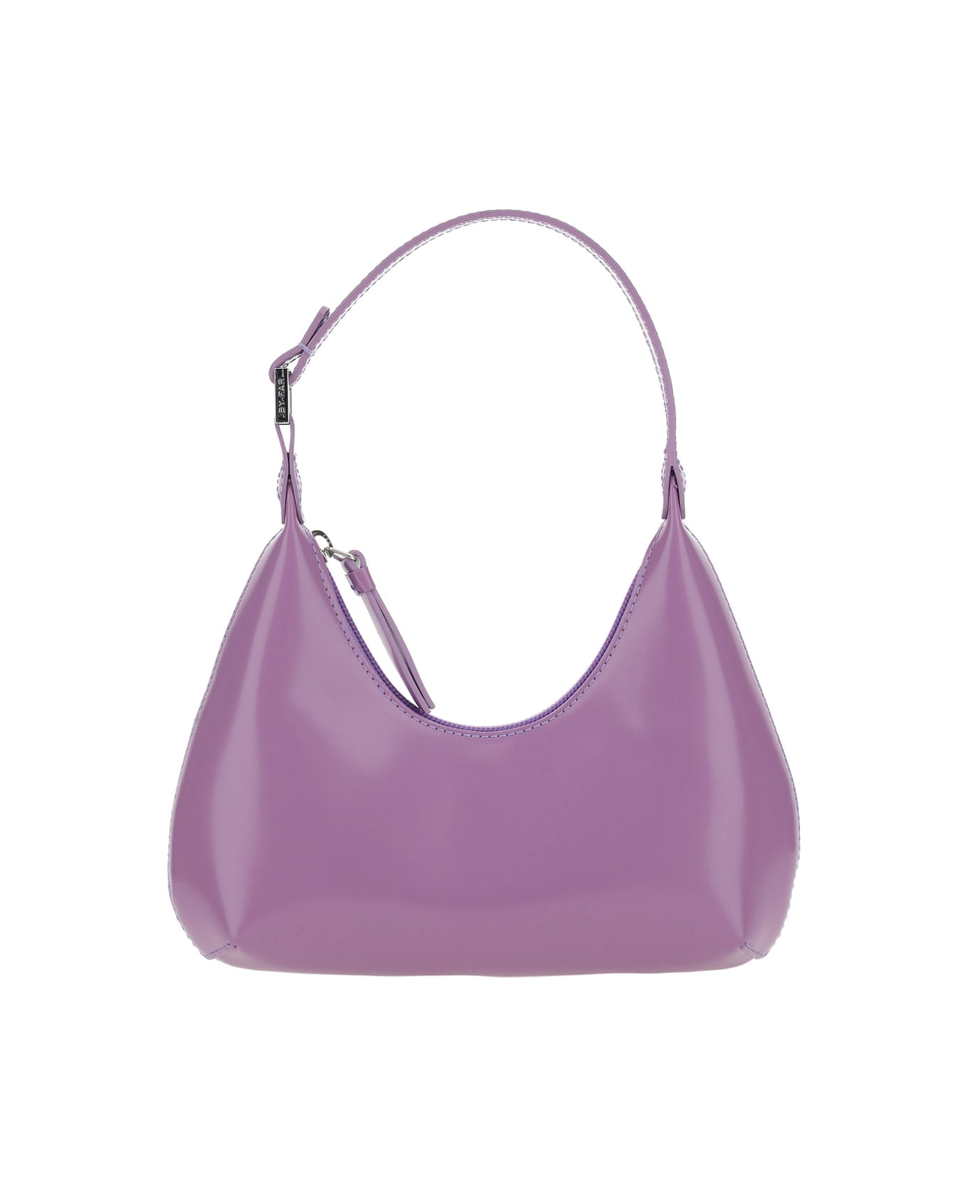 Calfskin baby amber shoulder bag by by far, top zipper closure, adjustable flat handle, center slit compartment, welt pockets, credit card compartment.
