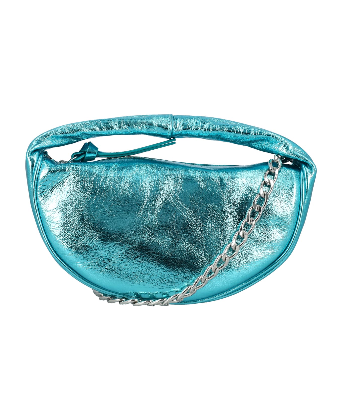 Baby Cush Metallic Leather Bag By By Far. Featuring: Fix Top Handle Detachable Chain Shoulder Strap Zip Closure Main Compartment Cotton Lining Laminated Effect Height: 12cm Width:23cm Depth: 7cm