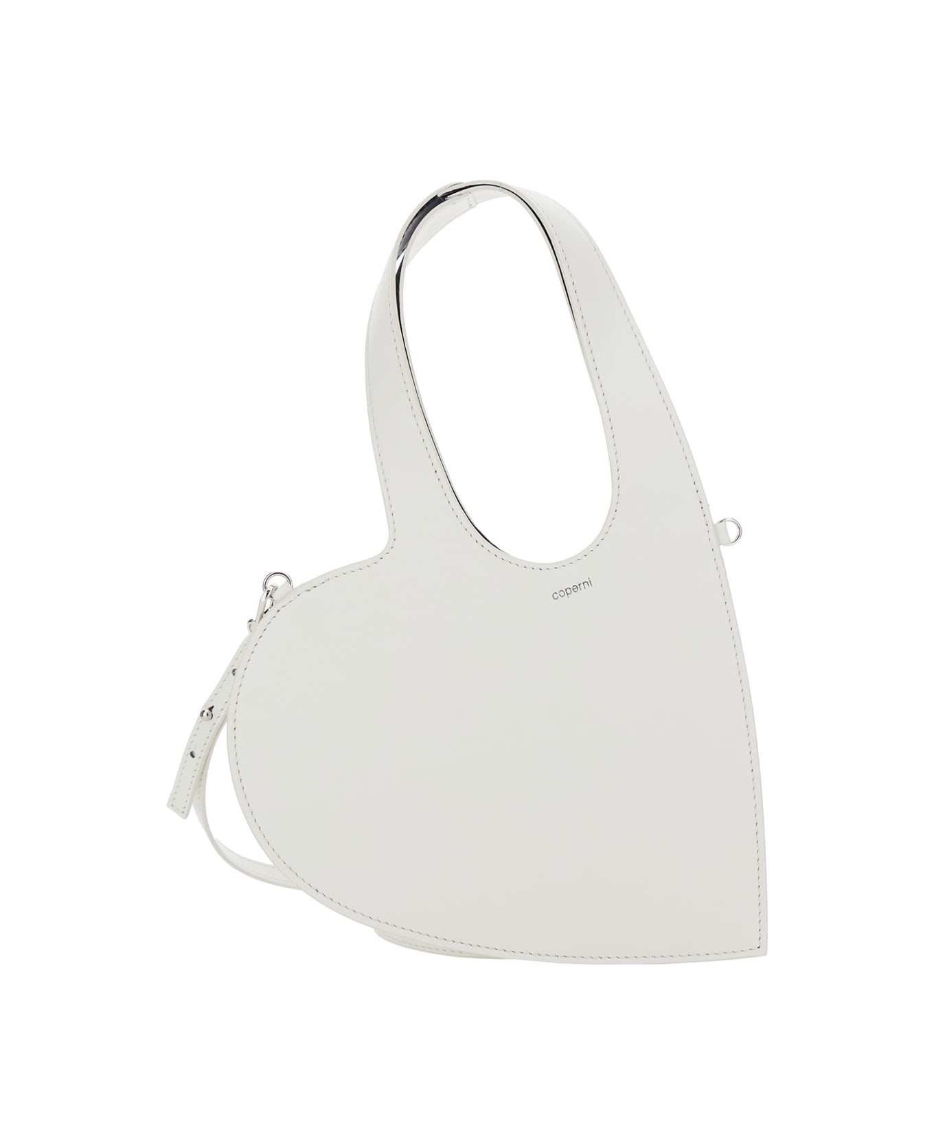 Crossbody bag White Heart shaped One cut-out handle One adjustable and removable shoulder strap Logo lettering on the front Silver tone metalware Smooth grain Leather Dimensions: 21x32 cm
