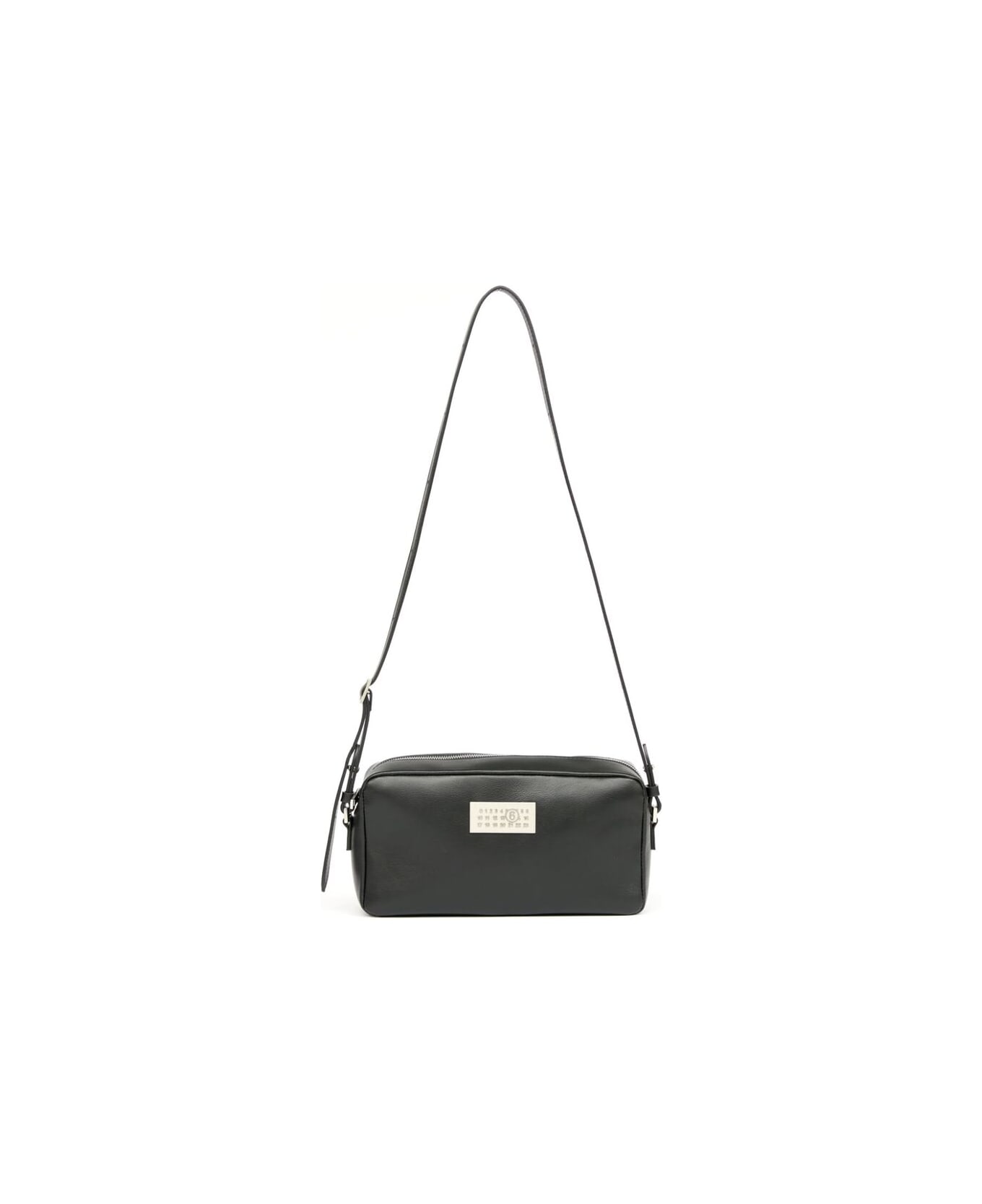 black calf leather contrast stitching signature numbers motif adjustable shoulder strap top zip fastening silver-tone hardware