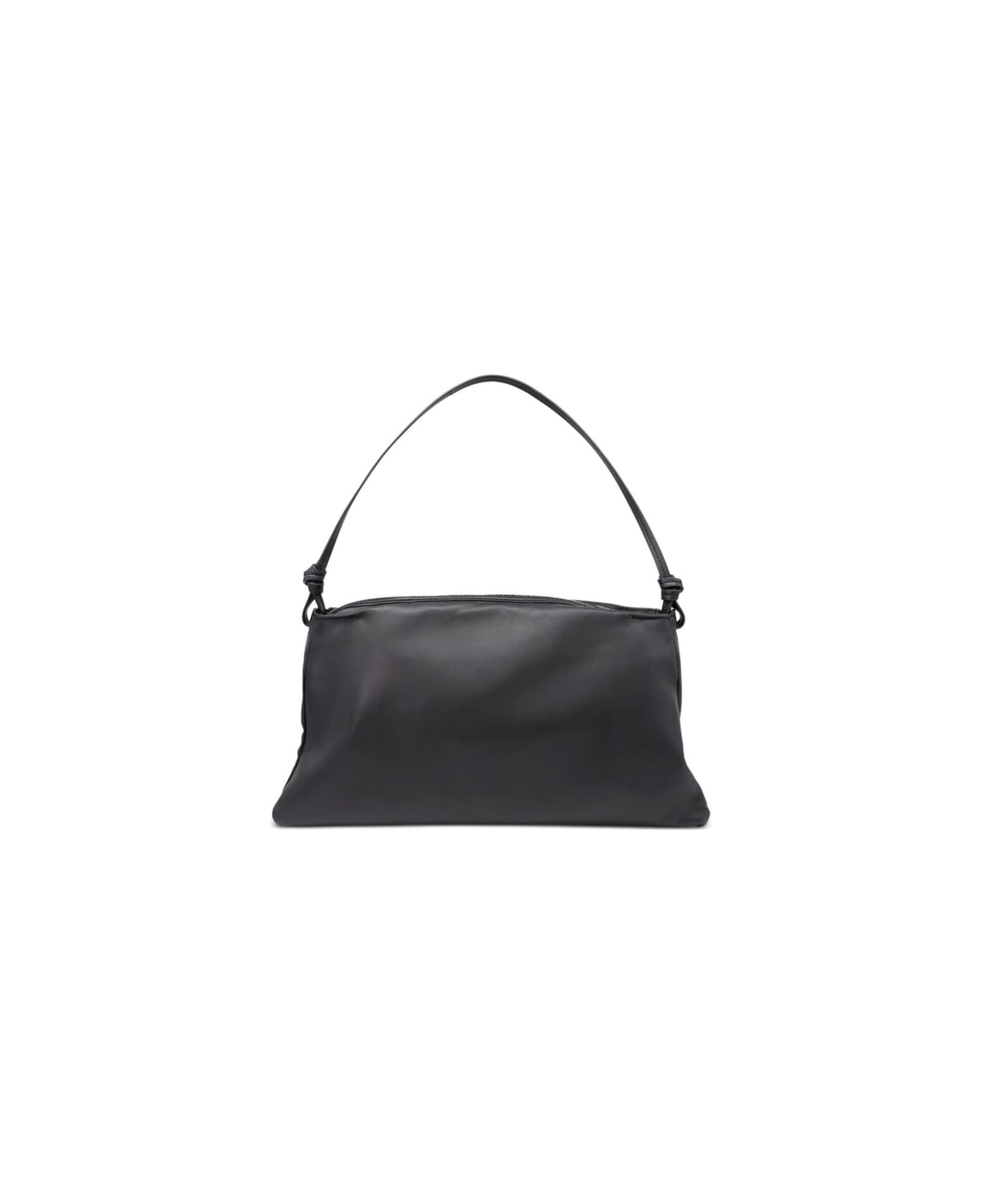 black calf leather internal logo patch knot detailing adjustable shoulder strap top zip fastening internal pocket main compartment