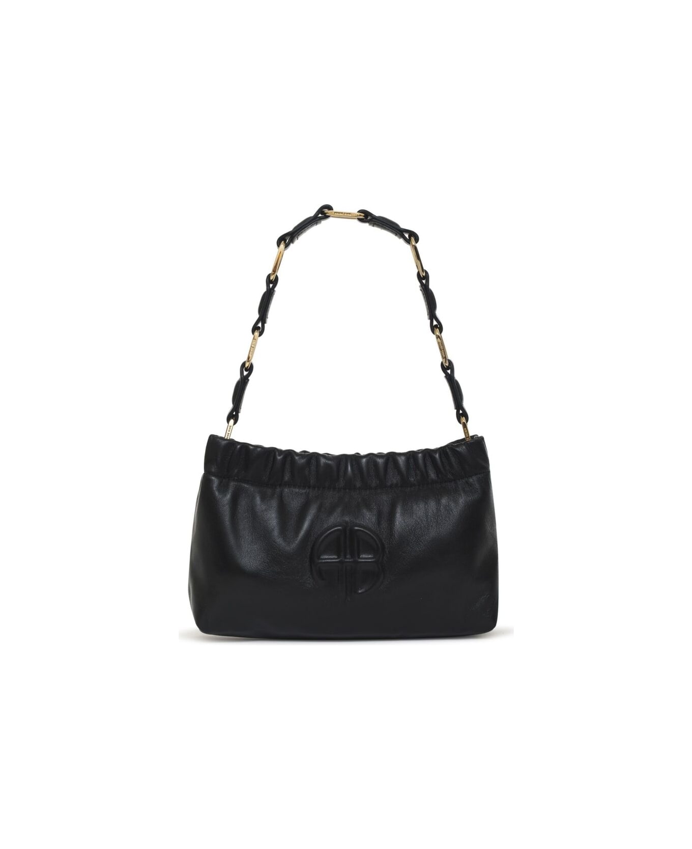 black leather embossed logo to the front leather and chain-link shoulder strap top zip fastening internal zip-fastening pocket main compartment