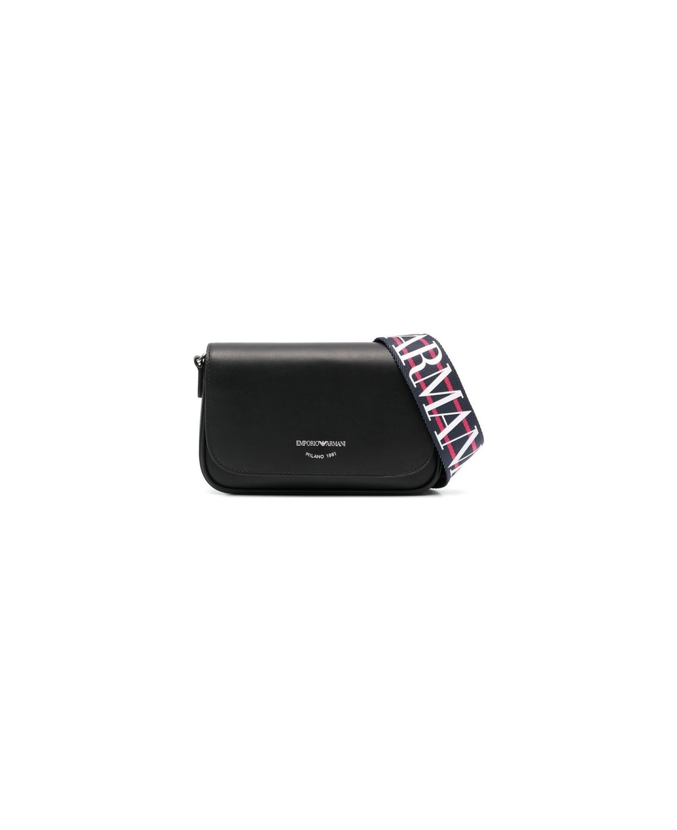 black calf leather embossed logo to the front foldover top with magnetic fastening main compartment internal zip-fastening pocket internal slip pocket adjustable detachable shoulder strap