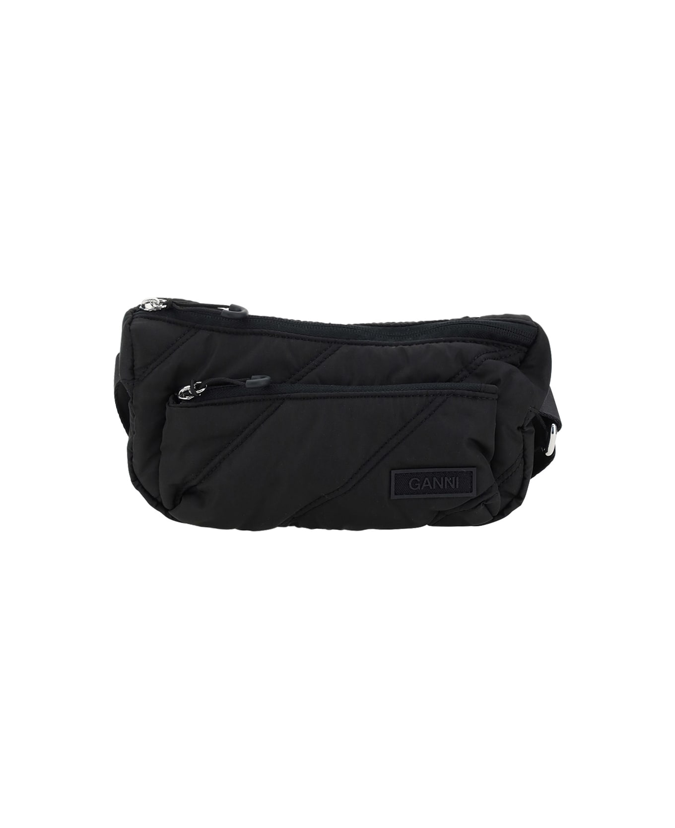 Baguette shoulder bag by ganni, quilted and padded design, tone-on-tone trim, flat adjustable shoulder strap, zippered top closure, zippered patch pocket on front for closure, rubber patch with iconic brand signature embossed on front. Composition: 100% % Polyester