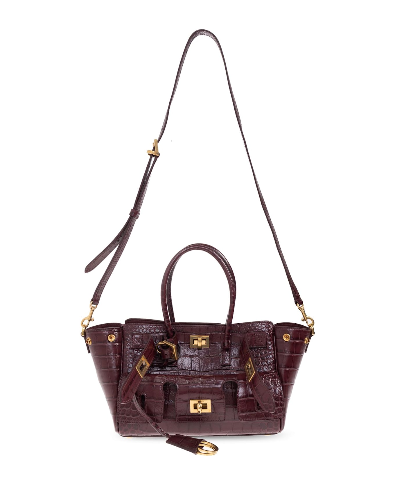 The Bel Air Shoulder Bag by Balenciaga exemplifies the apex of modern sophistication. Crafted from the finest embossed leather with a distinctive crocodile pattern, its structured, geometric silhouette elegantly expands towards the top, providing both visual interest and refined function. The deep burgundy hue is complemented by lustrous gold-toned hardware signature clasps, buckles, and feet elevating its aura of exclusivity. This compact design transitions gracefully from a chic shoulder bag to a handheld accessory, making it the quintessential companion for both day and evening pursuits. Decorative front straps with gold buckles pay homage to haute couture traditions, blending heritage with contemporary allure. Why choose this product? Exquisite embossed leather with crocodile motif for timeless luxury Distinct, architectural structure ensures lasting appeal Sumptuous burgundy color enriched with gold accents Versatile silhouette perfect for shoulder or hand carry Signature Balenciaga design marrying haute couture heritage with modern craftsmanship