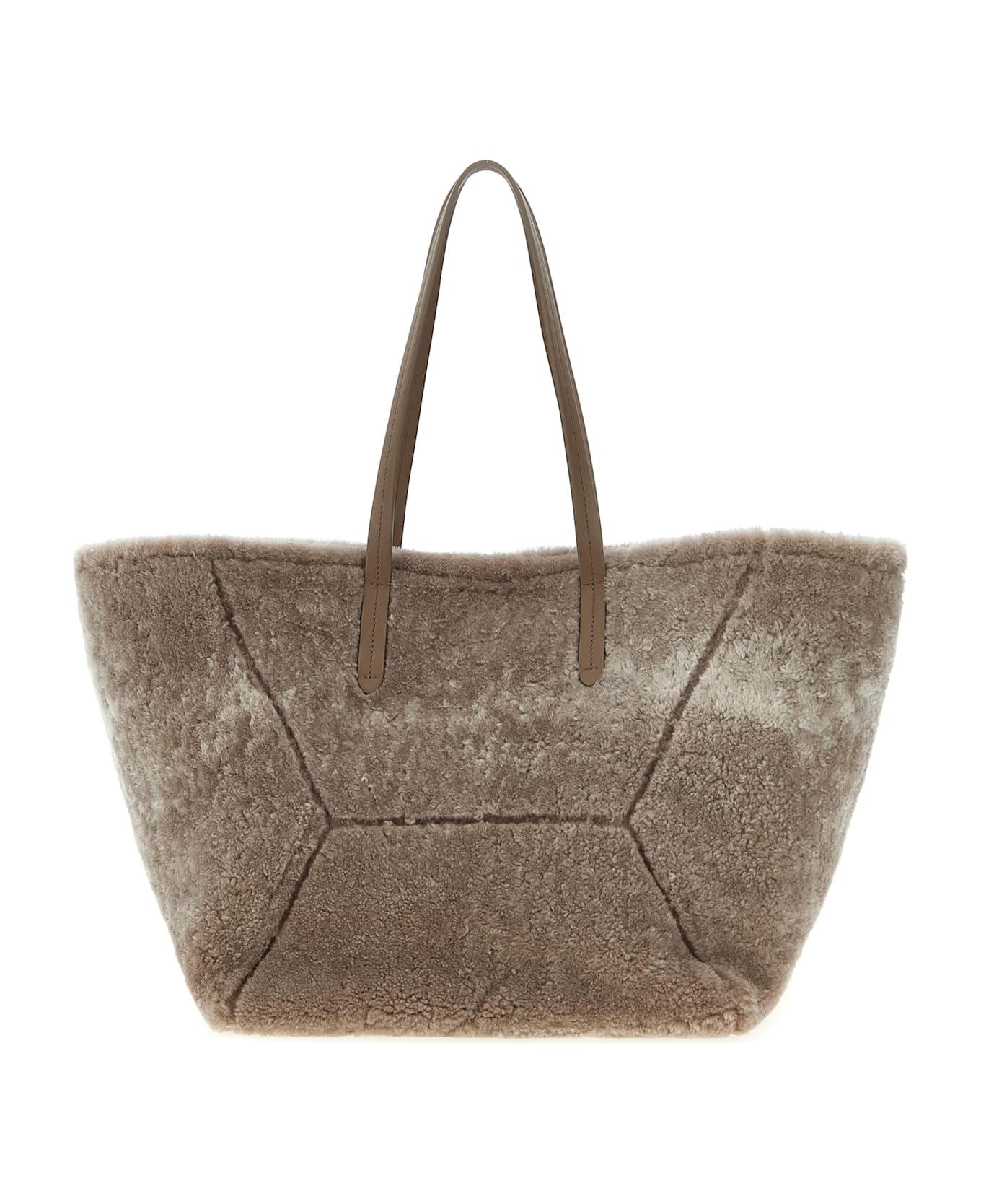 'BC Duo' large shoulder bag in Curly shearling with panel construction, double fixed handle, front embossed logo, magnetic closure, side jewel details, removable clutch.