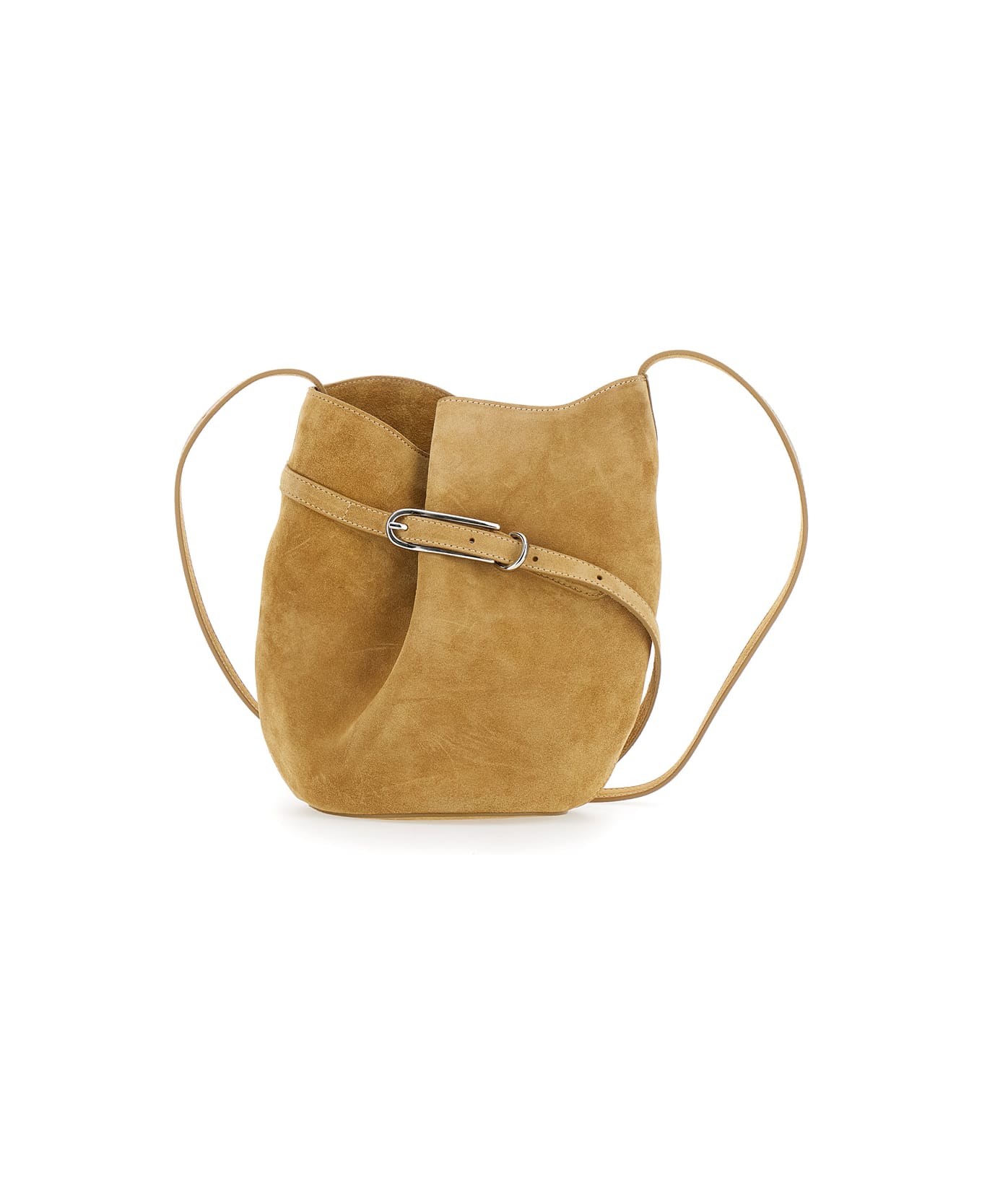 Belted Bucket' Beige Shoulder Bag With Belt On The Front In Suede Woman