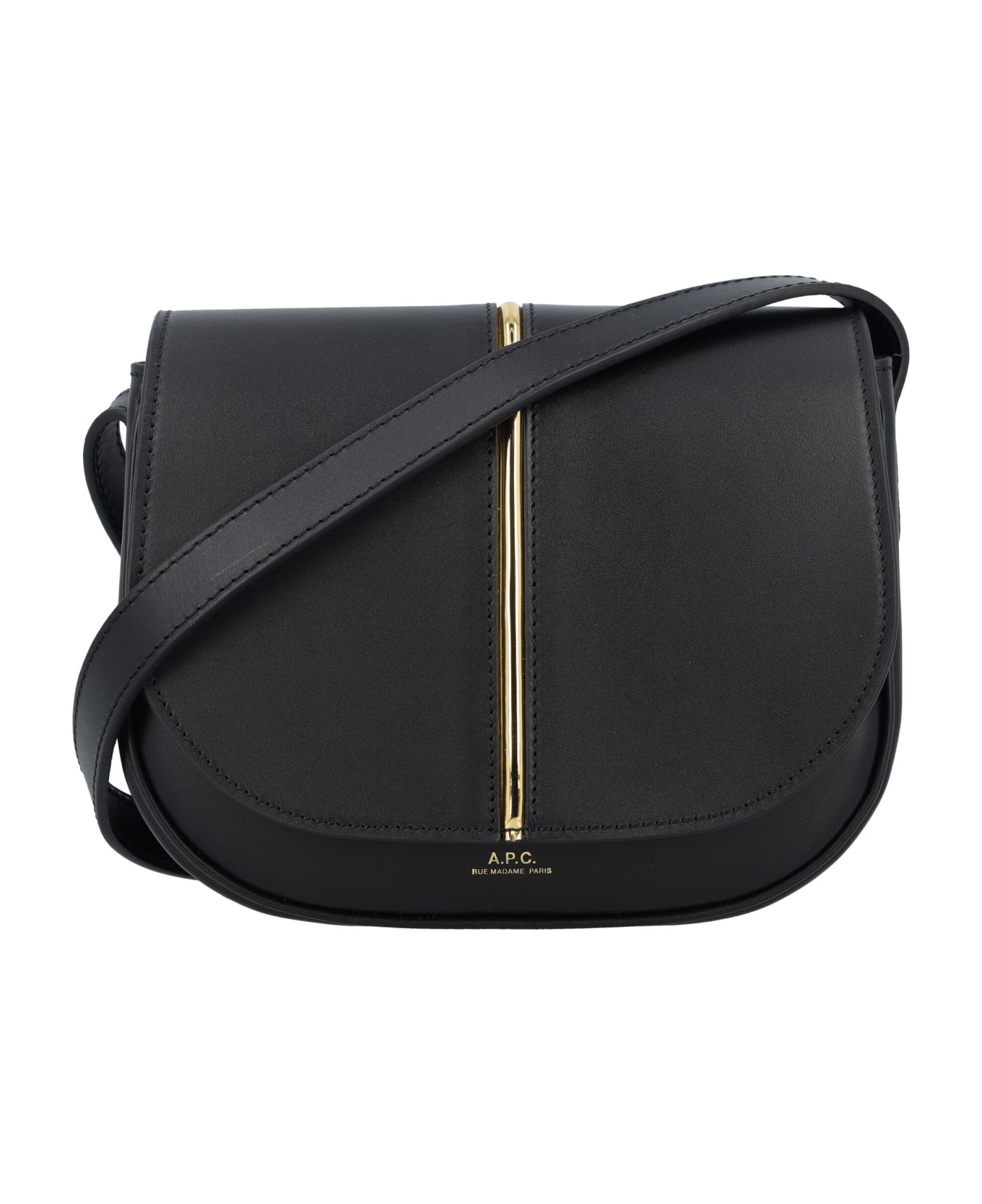 Smooth Leather Betty Cross-body Bag By A. p. c. Featuring: Foldover Top With Magnetic Closure Adjustable Shoulder Strap With Rounded Rivets Golden Logo Embossed On The Front Gold-tone Metal Detail At Centre Front Interior Patch Pocket Main Compartment Both Crossbody And Shoulder Design Height: 16cm Width: 20cm Depth: 6cm