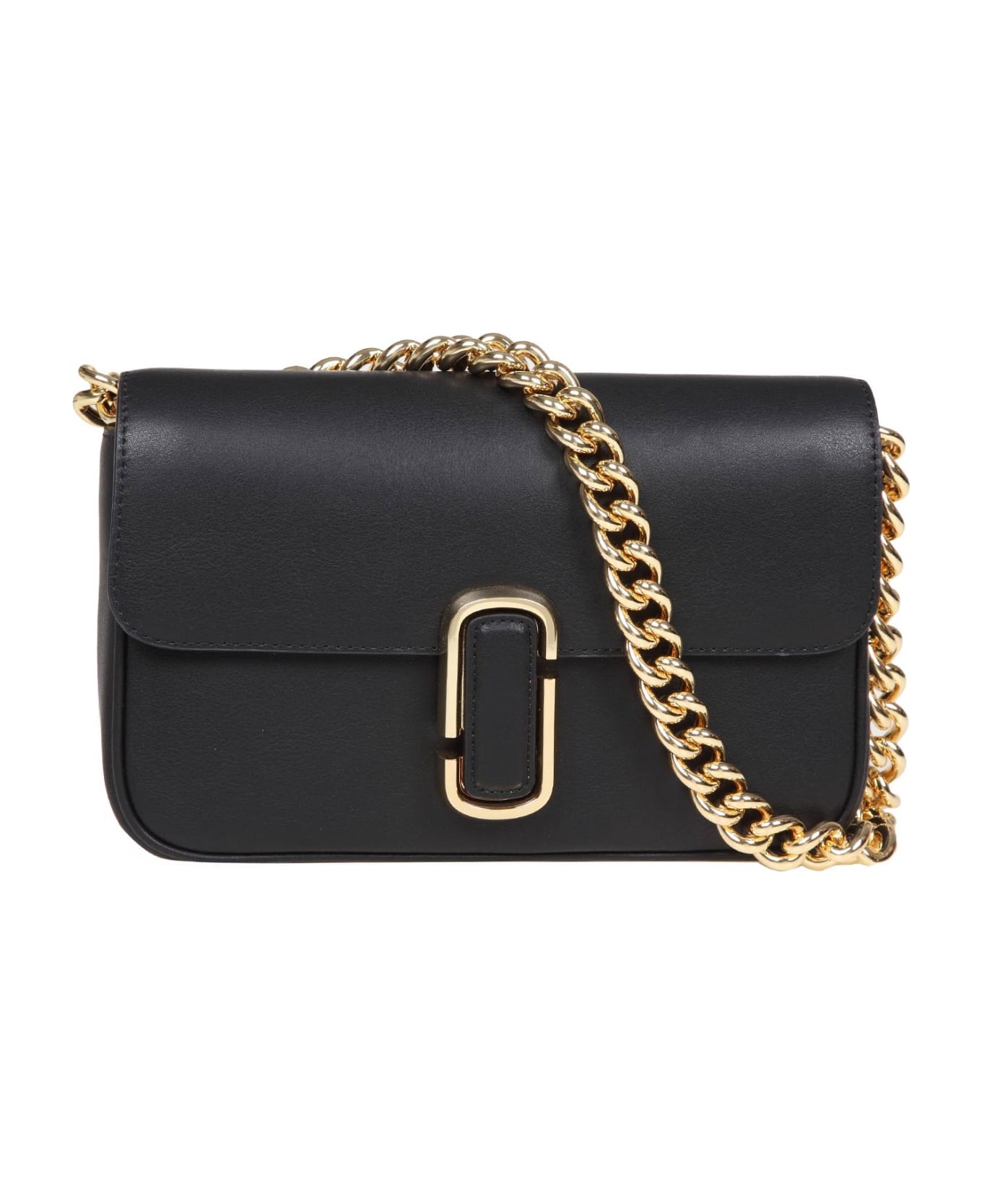 Shoulder bag in leather black colour smooth cowhide double j marc jacobs paper clip back slot pocket fabric interior internal slot pocket internal zip pocket handle with removable chain removable and adjustable shoulder strap in fabric closure with flap and snap button shoulder strap length 68cm measures: width 24cm height 15cm depth 4. 5cm