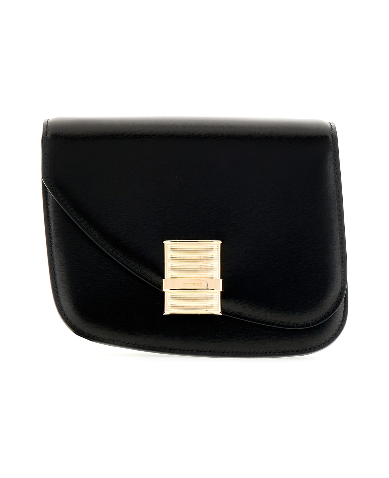 Crossbody bag realized in smooth calf leather enriched by metal logoed detail at the front. -Adjustable detachable tonal leather shoulder strap -Snap button closure under the flap -Lined interior with a compartment and two credit card slots Composition: Exterior: 100% Calf Lining: 100% Leather Finishing: Golden metal