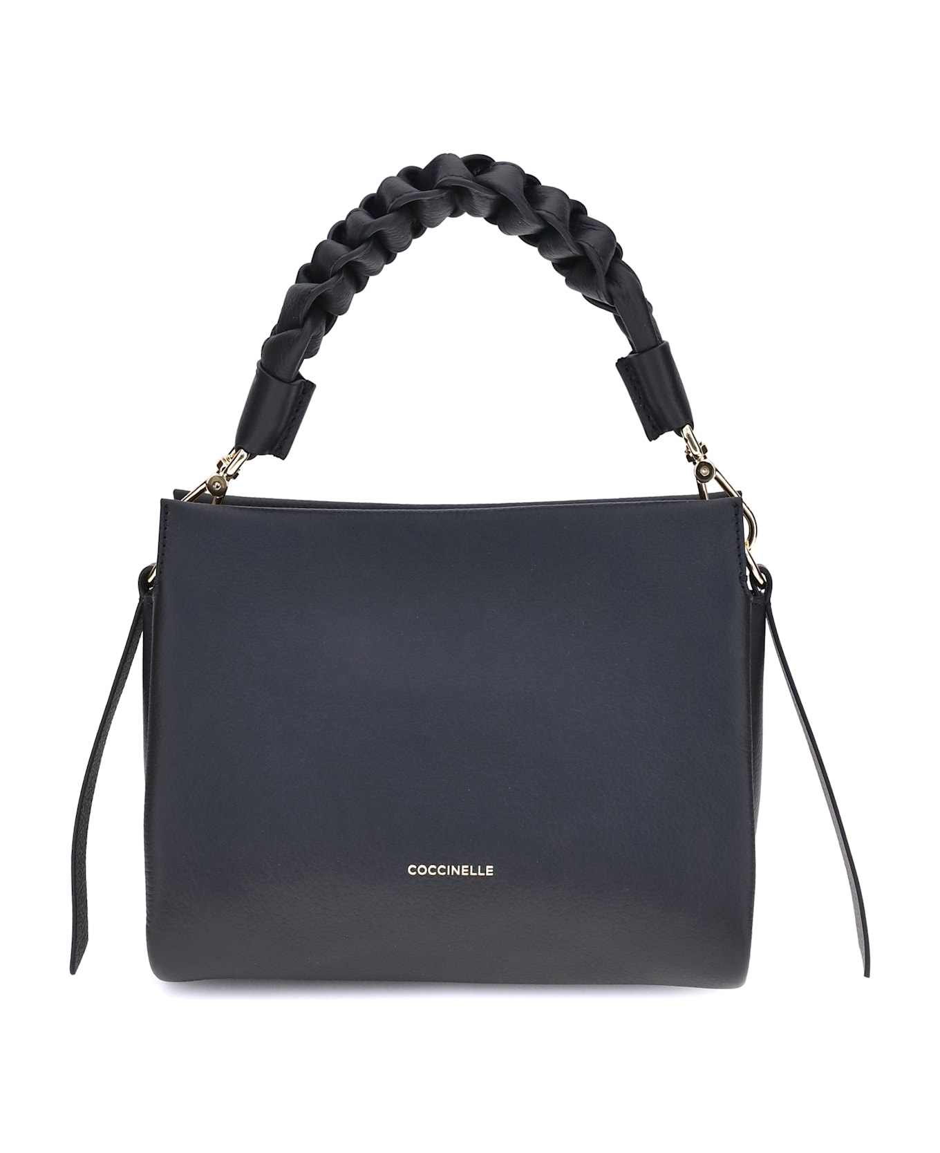 The boheme handbag by coccinelle is an elegant and sophisticated accessory made of high-quality garnet leather. the rigid leather top handle, with a braided and twisted detail, adds a handcrafted and distinctive touch. the removable and adjustable flat shoulder strap allows it to be worn on the shoulder or crossbody for added versatility. the top zipper closure provides security, while the brand's iconic monogram, press-stamped on the front, lends a touch of recognition.