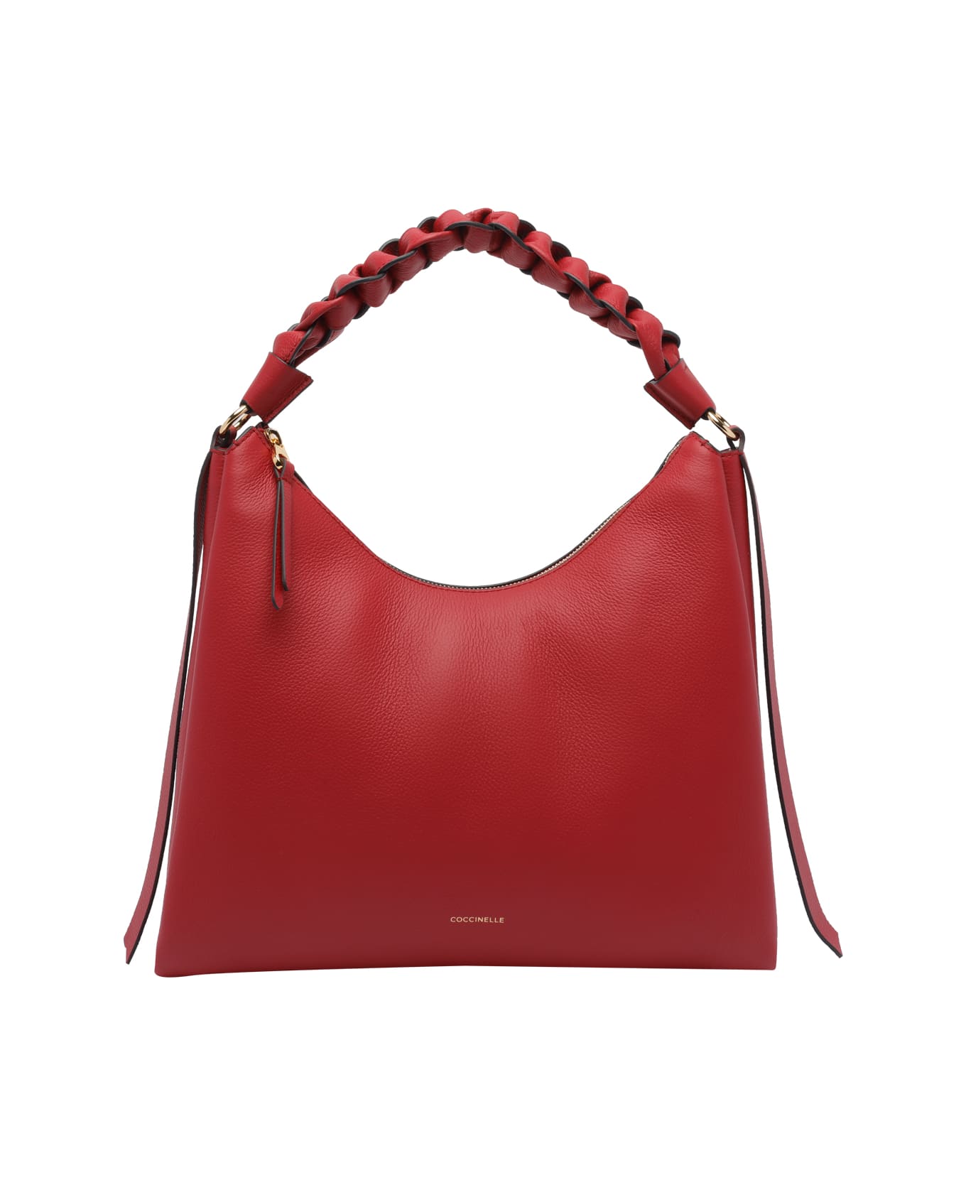 Coccinelle sangria red and skin Boheme shoulder bag, zip closure, 3 sections, 2 inner open pockets, 1 handle, leather model