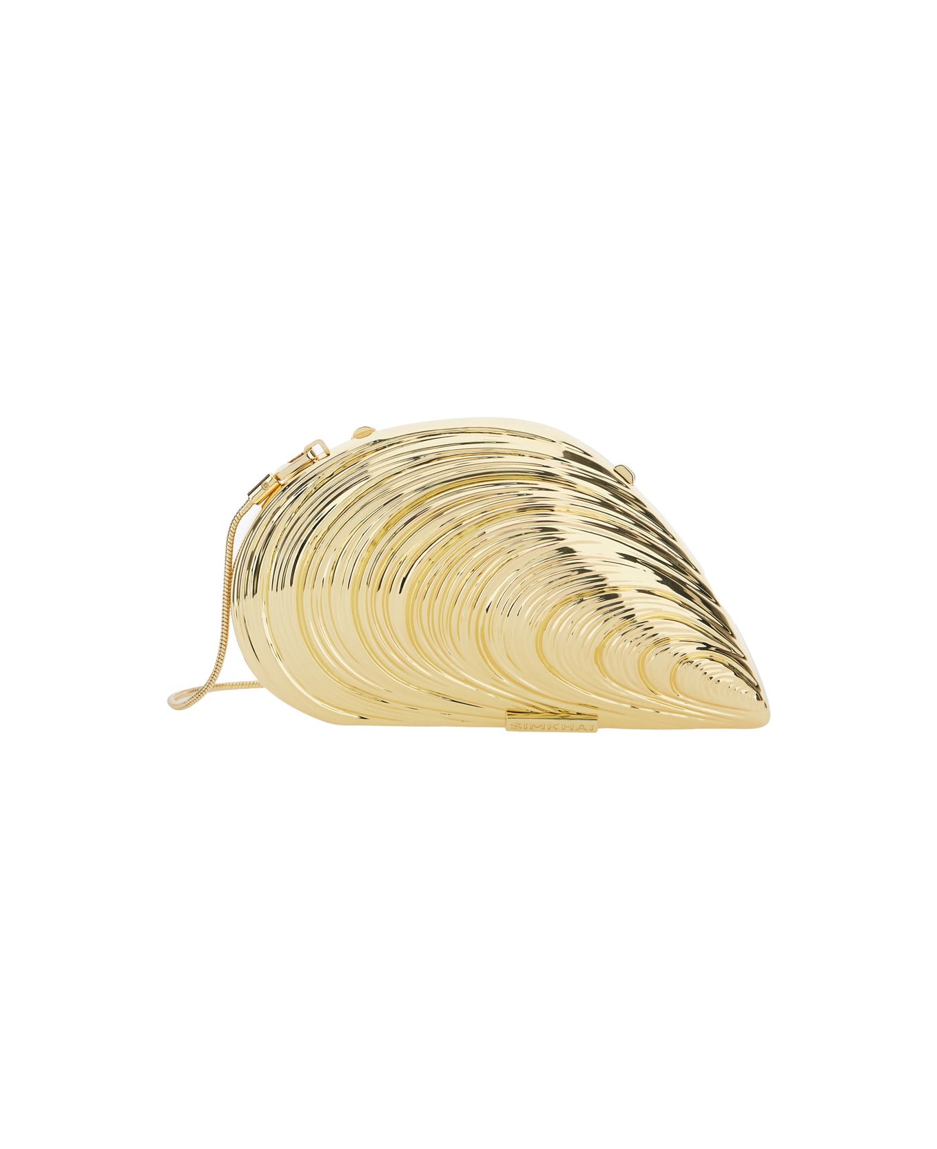 Clutch Metallic One adjustable and removable shoulder strap Logo patch Main compartment Oyster shell design Gold tone metalware Brass Dimensions: 25,4x15,2x7,6 cm