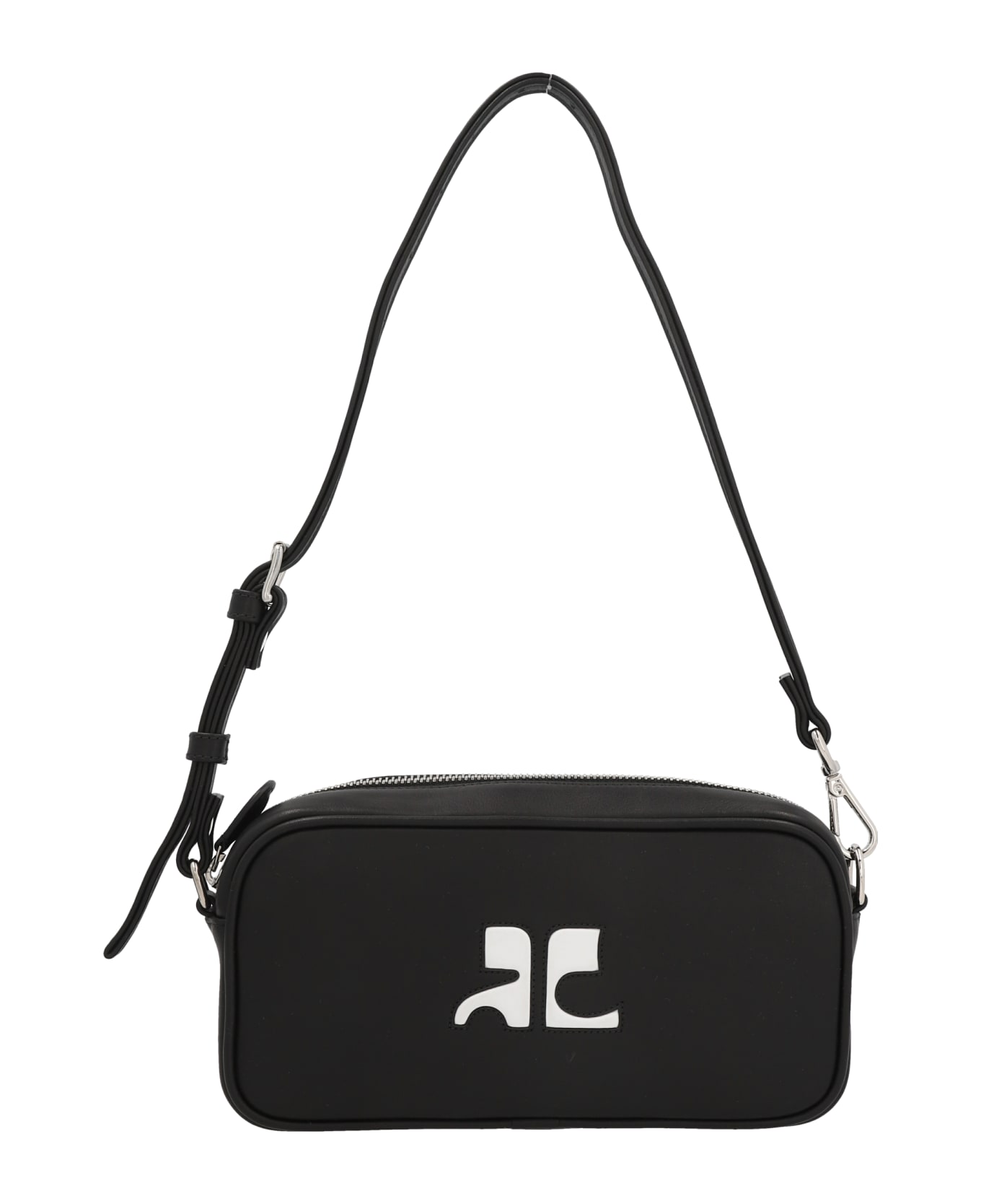 Camera Baguette' leather shoulder bag with contrast front logo, zip closure, awith adjustable and removable handle.