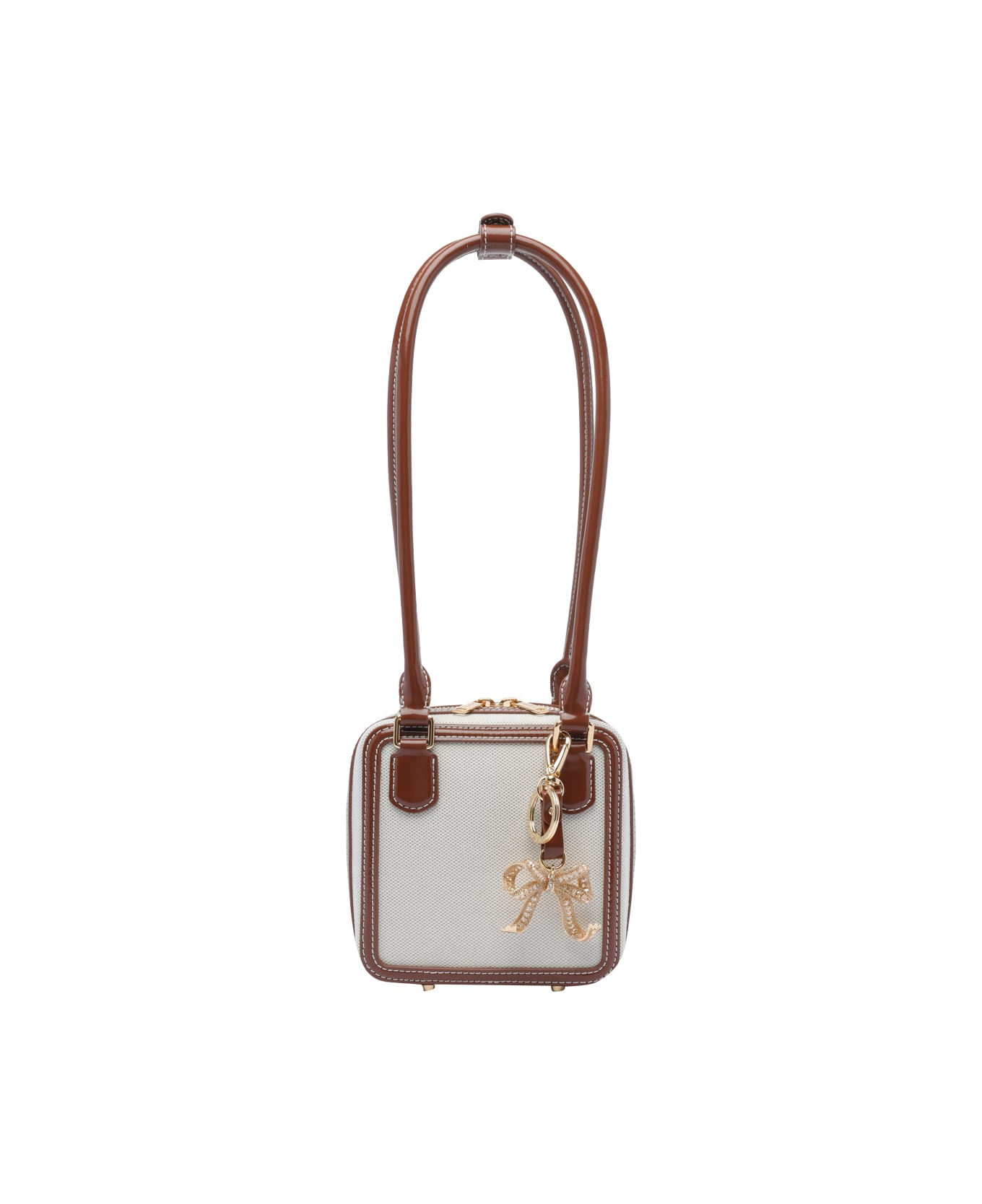 Self Portrait beige Canvas Square shoulder bag, zip closure, inner slot, 2 shoulder straps, bow charm