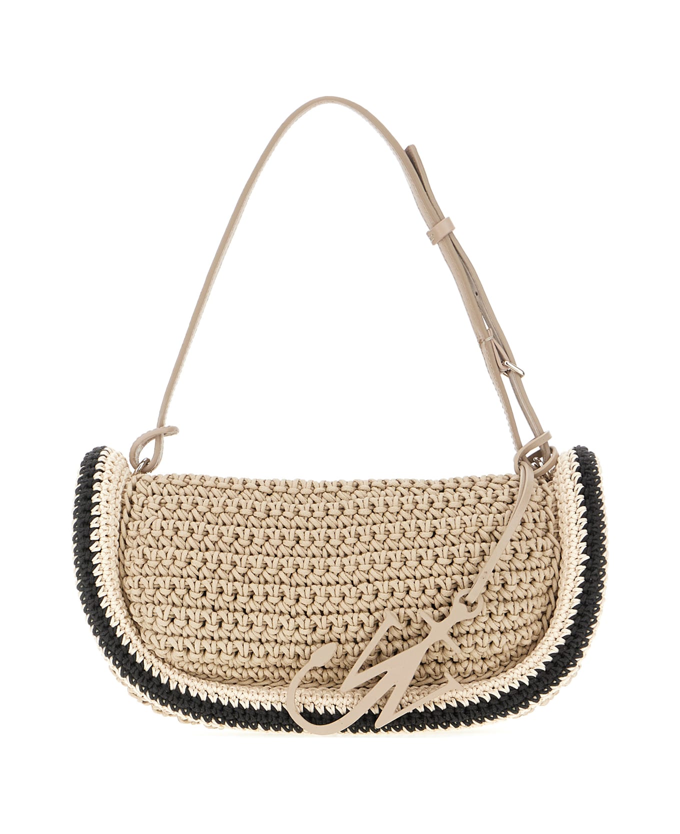 Shoulder bag realized in raffia characterized by contrasting trimmings enriched by detachable Anchor accessory on the handle. -Adjustable detachable leather handle -Zip closure -Unlined interior