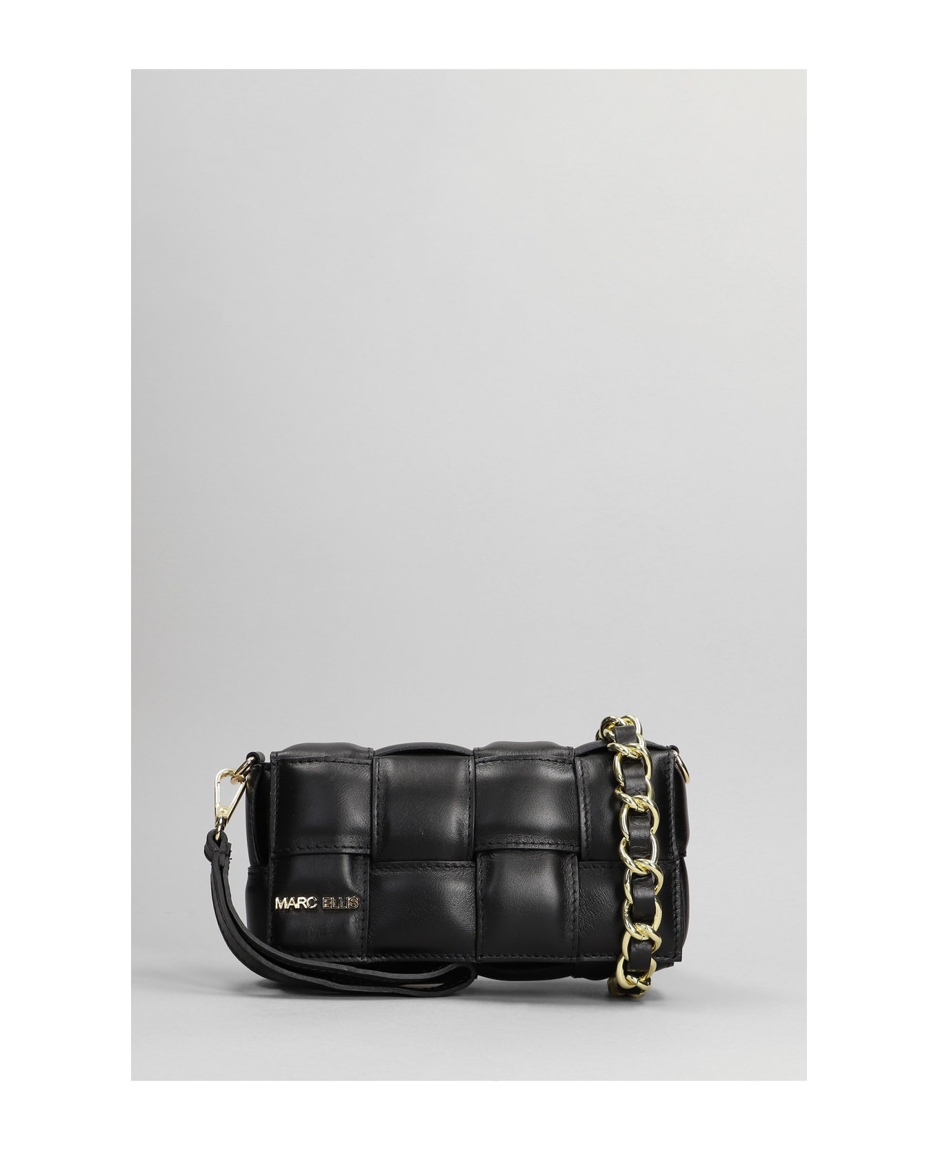 Carissa S Shoulder bag in black leather, shoulder strap, woven design, 100% leather, Made in Italy, Height 120 mm, Width 215 mm