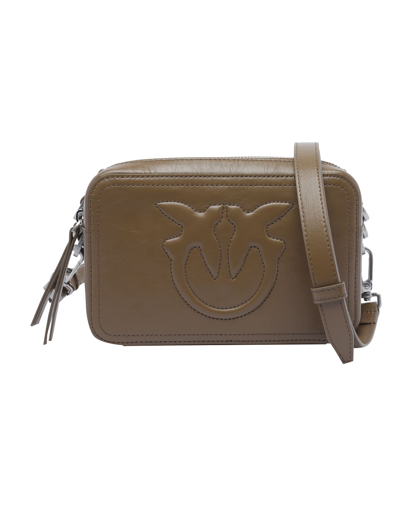 Pinko green Carrie camera bag, zip closure, 2 sections, 3 inner slots, adaptable and removable straps, frontal tone on tone logo Composition: 100% Calf Leather