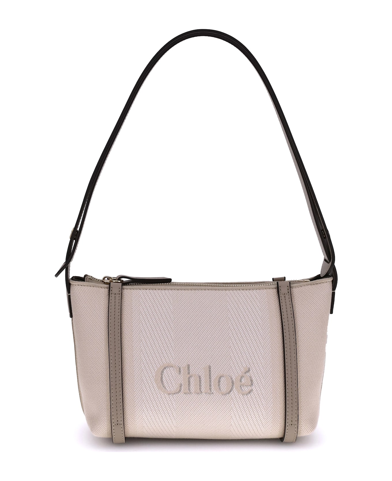 Chloé's cotton carry shoulder bag is a stylish and versatile accessory made from durable cotton. it features a flat leather shoulder strap that is comfortable for carrying on the shoulder. the closure features a top zipper, providing security and convenience. the front of the bag features the jacquard monogram, a distinctive detail of the brand. leather details add a touch of sophistication. inside, the bag offers ample space with a single compartment, perfect for organizing personal items