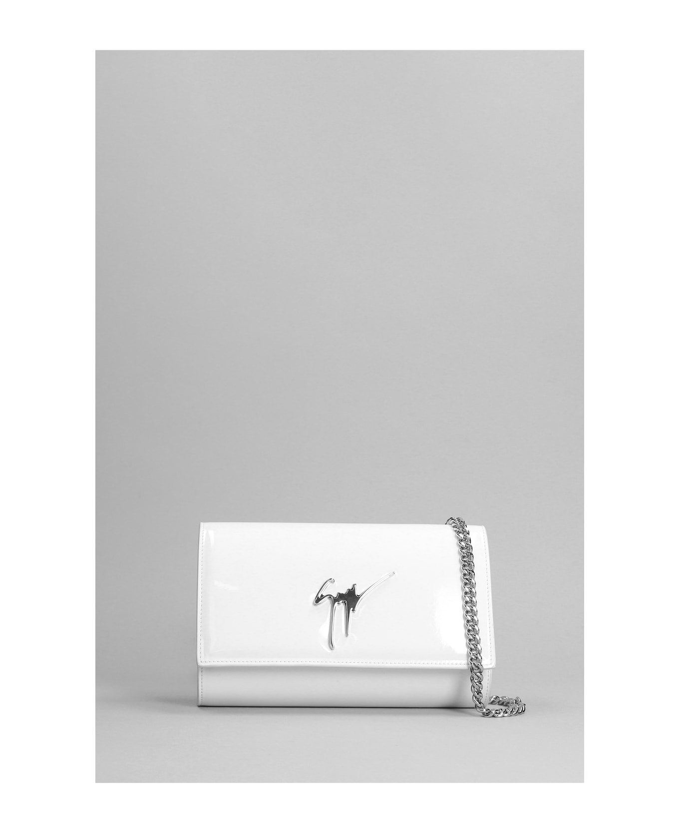 Cleopatra Shoulder bag in white leather, magnetic closure, metallic logo, chain shoulder strap, 100% leather, Made in Italy, Height 130 mm, Width 195 mm