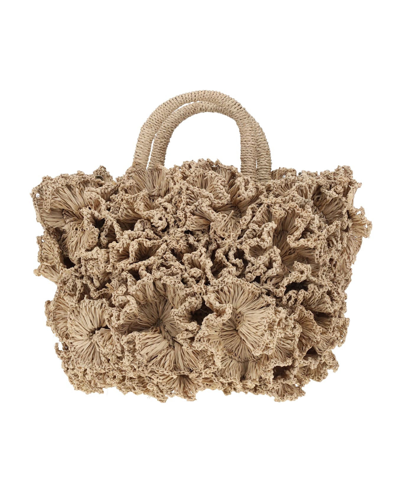 Ibeliv's coral handbag is an elegant and distinctive accessory, crafted from ball raffia for a unique and refined effect. the tubular handle and removable shoulder strap in vegetable-tanned leather add practicality and versatility, allowing it to be worn both hand and shoulder. the concealed drawstring closure provides security without compromising design, making this bag a chic and original addition to any outfit.