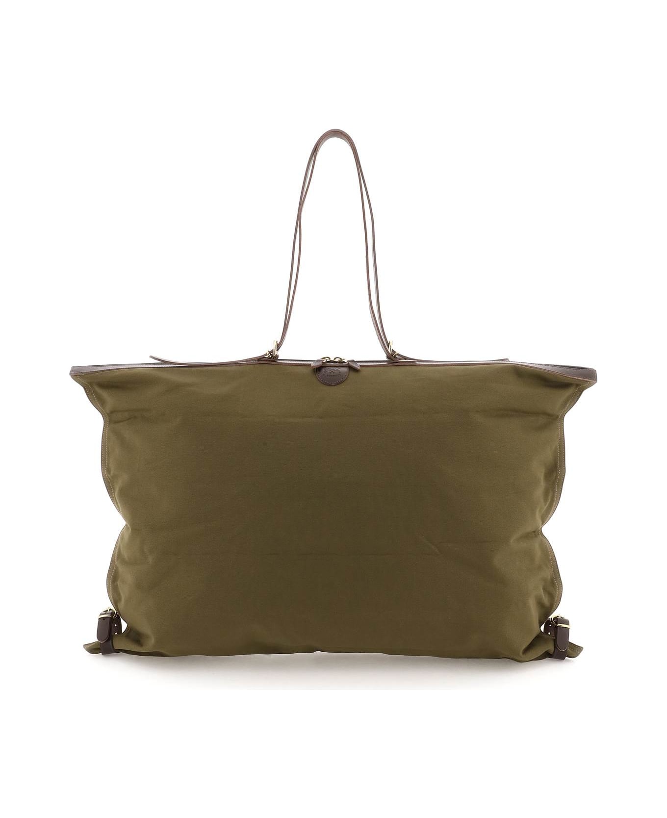 Maxi tote bag from Il Bisonte made of cotton canvas with double adjustable leather handles. Zippered closure with leather zip-puller, unlined interior with one zippered pocket and gold-finish metalware. Can be fold on itself thanks to adjustable leather straps.