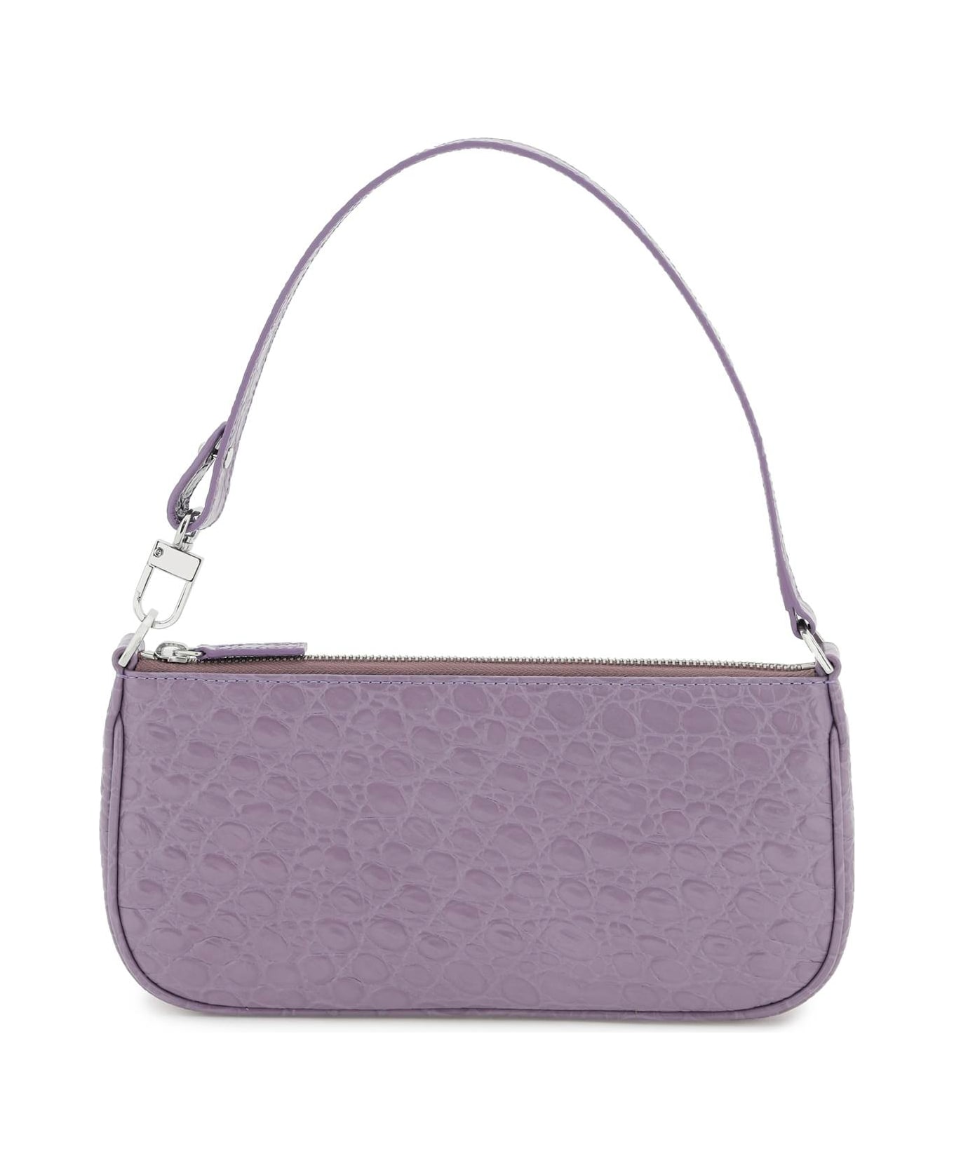 BY FAR Rachel baguette bag crafted in croco-embossed leather. Top handle with single side snap-hook, zip closure and cotton lining. Silver-finished metalware.