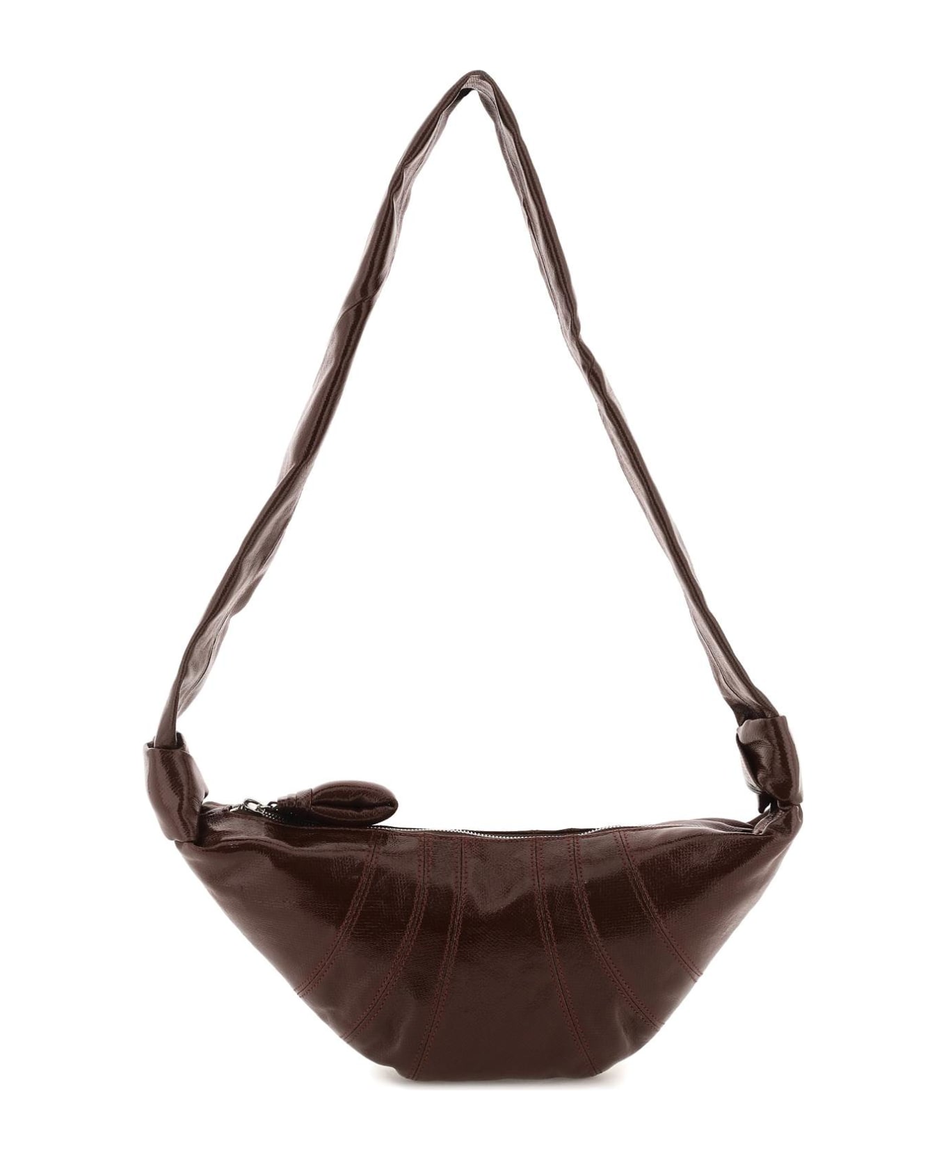 Lemaire bag made from glossy-finished coated cotton canvas with and enhanced by a 'Croissant' shape. Shoulder strap with decorative side knots, silver-tone zip closure, interior lined in canvas with a patch pocket.