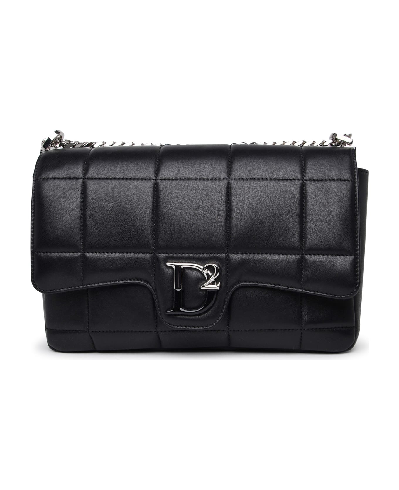 Quilted leather, chain shoulder strap, flap and magnetic button closure, front D2 metal lettering, inner zip pocket\n26 x 18 x 5. 5 cm