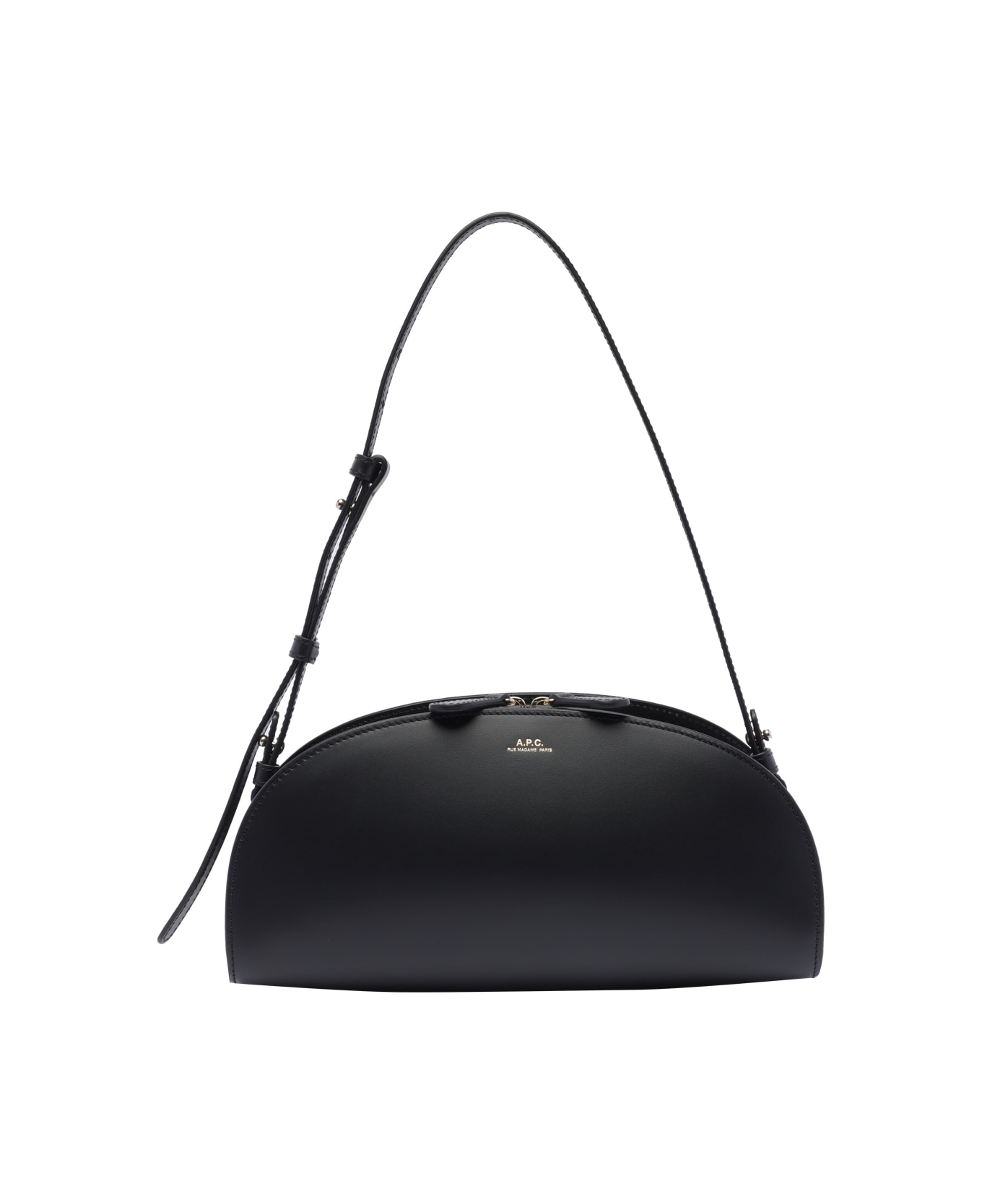 A. P. C. black Demi-Lune baguette bag, zip closure, inner open pocket, adaptable strap, frontal mini logo