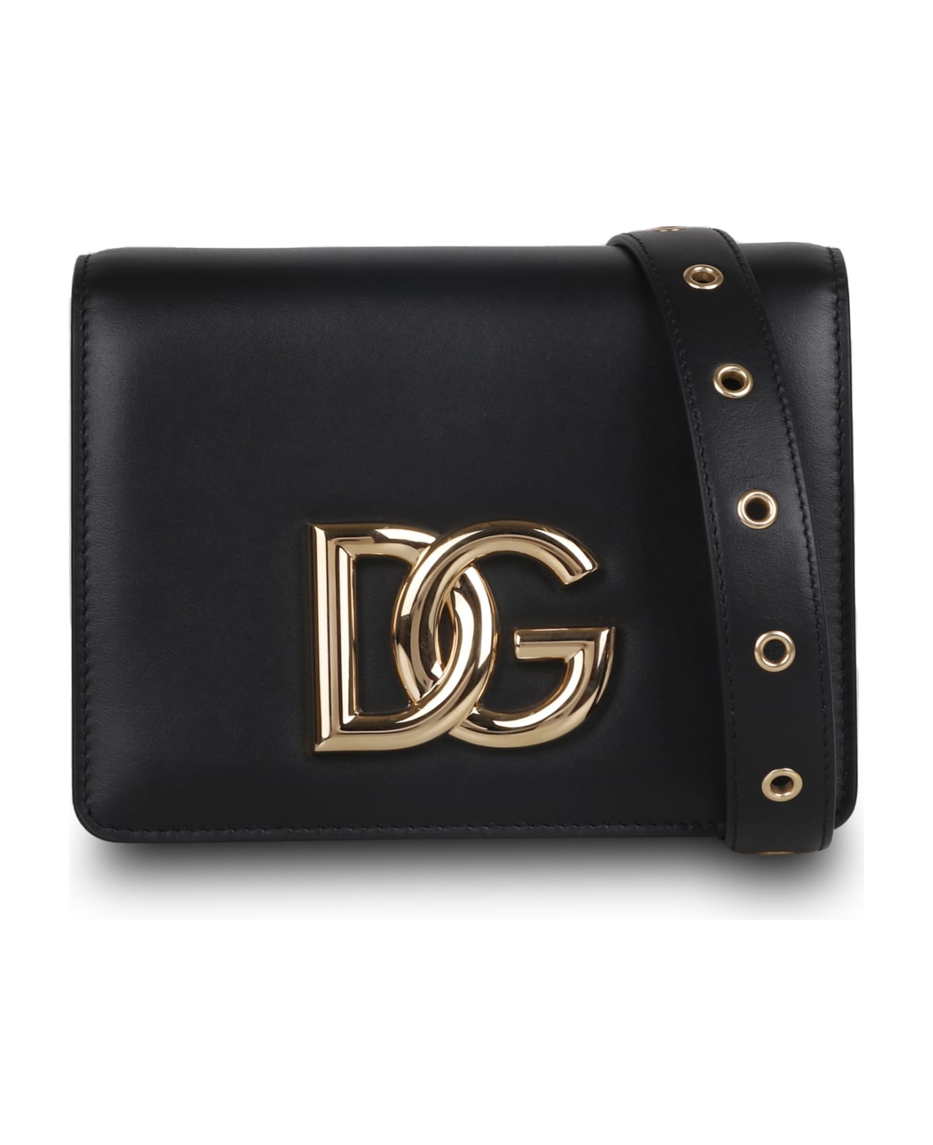 Shoulder bag 'Millenials', color Black, adjustable and removable strap that can be used in various ways, top closure with flap with magnetic buttons, gold-colored DG logo crossed, by Dolce & Gabbana Composition: 100% Leather
