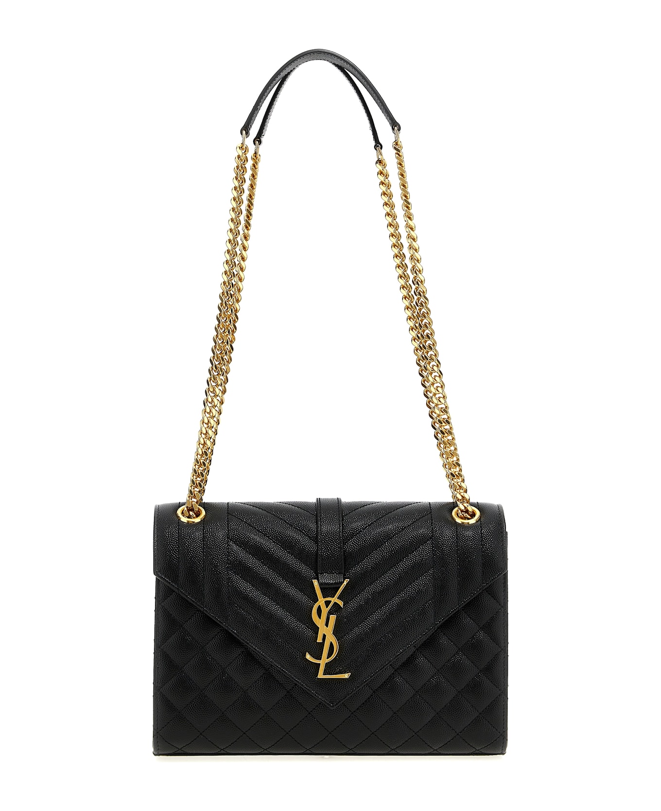 'Envelope' shoulder bag in grain de poudre quilted leather with chevron and diamond quilted stitching, magnetic flap closure, metal Cassandre logo on the front, chain and sliding leather shoulder strap, pocket. Composition: 100% calfskin leather (Bos Taurus)