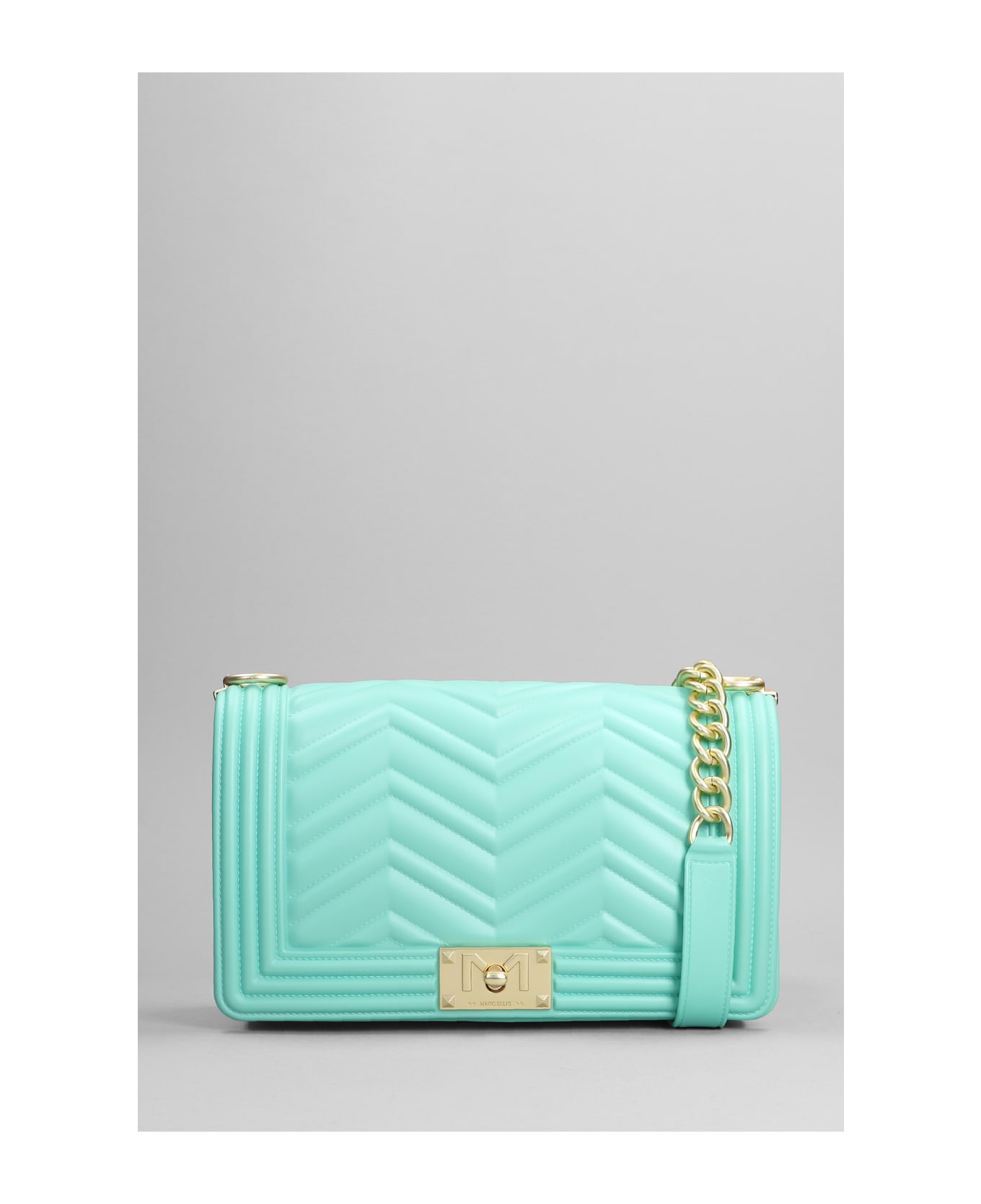 Flat Manhattan M Shoulder bag in green PVC, 100% artificial leather, push- lock fastening, quilted design, Made in Italy, chain shoulder strap, Height 140 mm, Width 250 mm