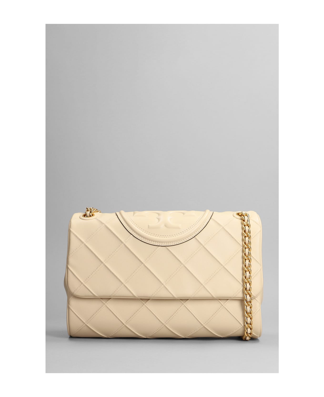 Fleming soft Shoulder bag in beige leather, chain and leather carry, quilted leather, magnetic closure, metallic logo, gold hardware, 100% leather, Made in Vietnam, Height 160 mm, Width 270 mm