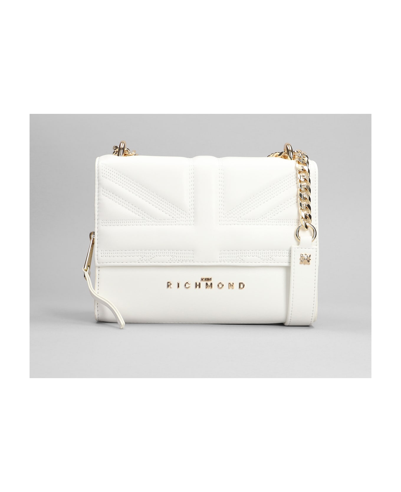 Gekok Shoulder bag in white leather, Height 160 mm, Width 220 mm, chain and leather carry, magnetic closure, gold hardware, 100% leather, Made in China