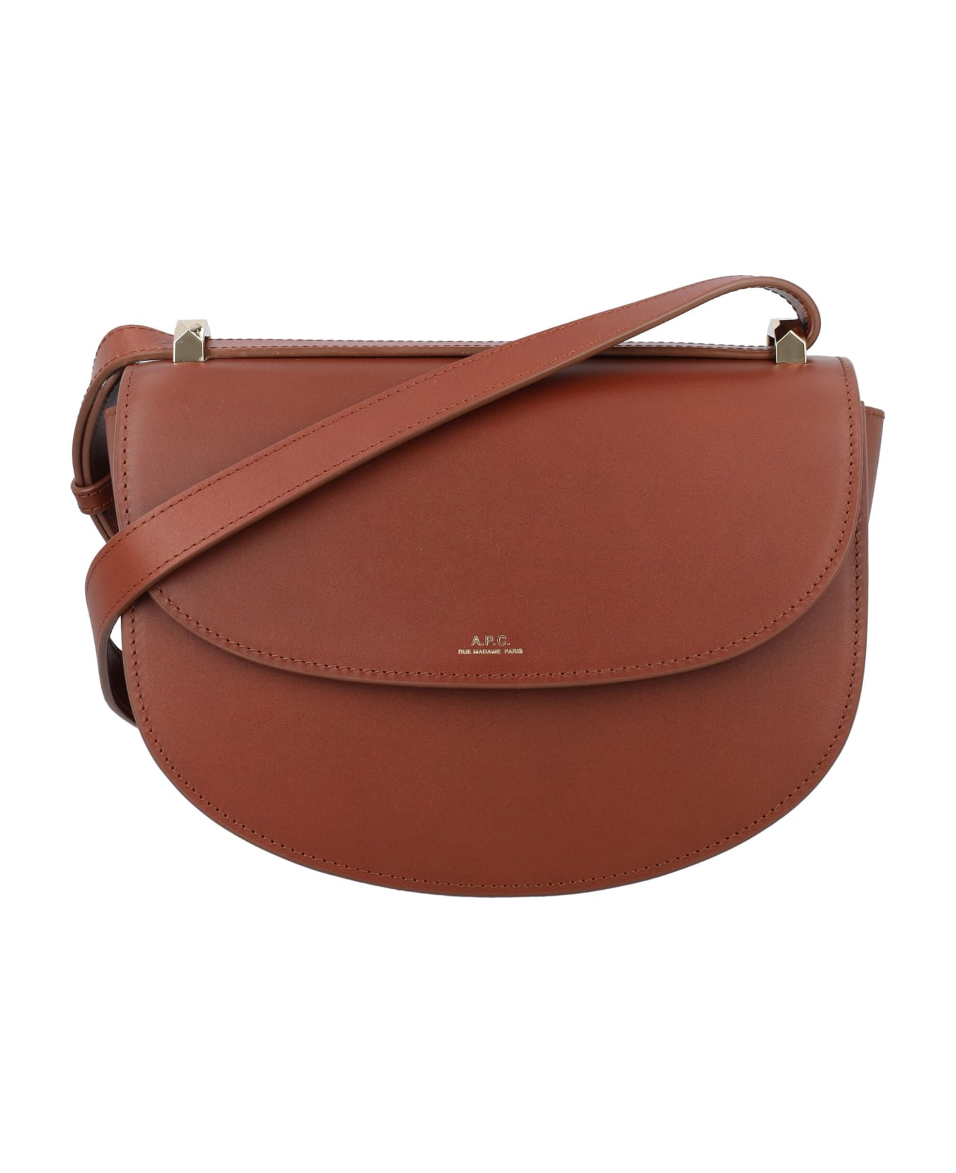 Smooth Leather Genève Bag By A. p. c. Featuring: Foldover Top With Magnetic Closure Gold-tone 'a. p. c. Rue Madame Paris' Logo Embossed On The Front Adjustable Buckle Shoulder Strap Faceted Brass U-rings On Top Rounded Bottom Interior Patch Pocket Gold-tone Hardware Height: 18cm Width: 25cm Depth: 8,5cm