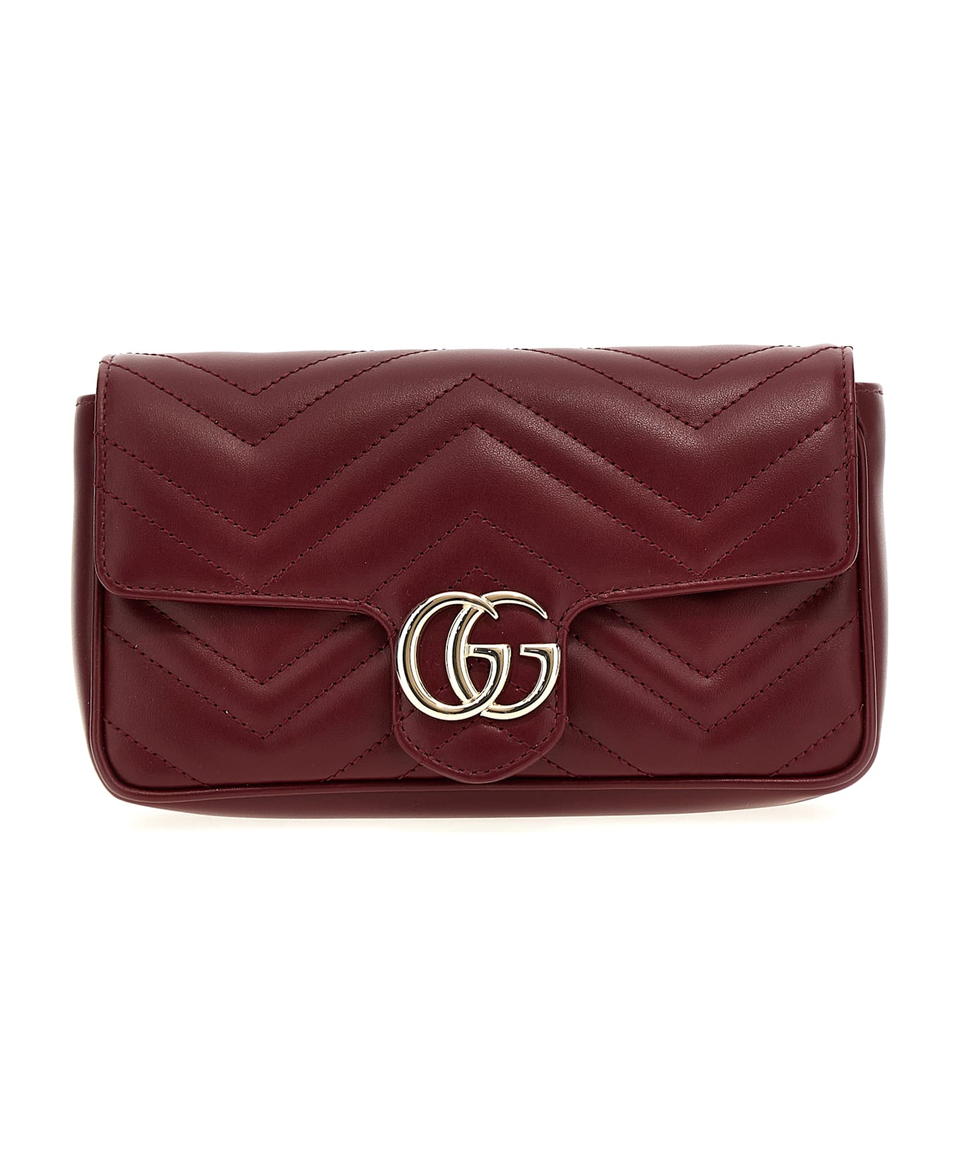 'GG Marmont Mini' chevron matelassé leather crossbody bag with additional removable white leather card holder, flap closure, front metal GG logo appliqué, removable chain shoulder strap. Composition: 100% calfskin leather (Bos Taurus)