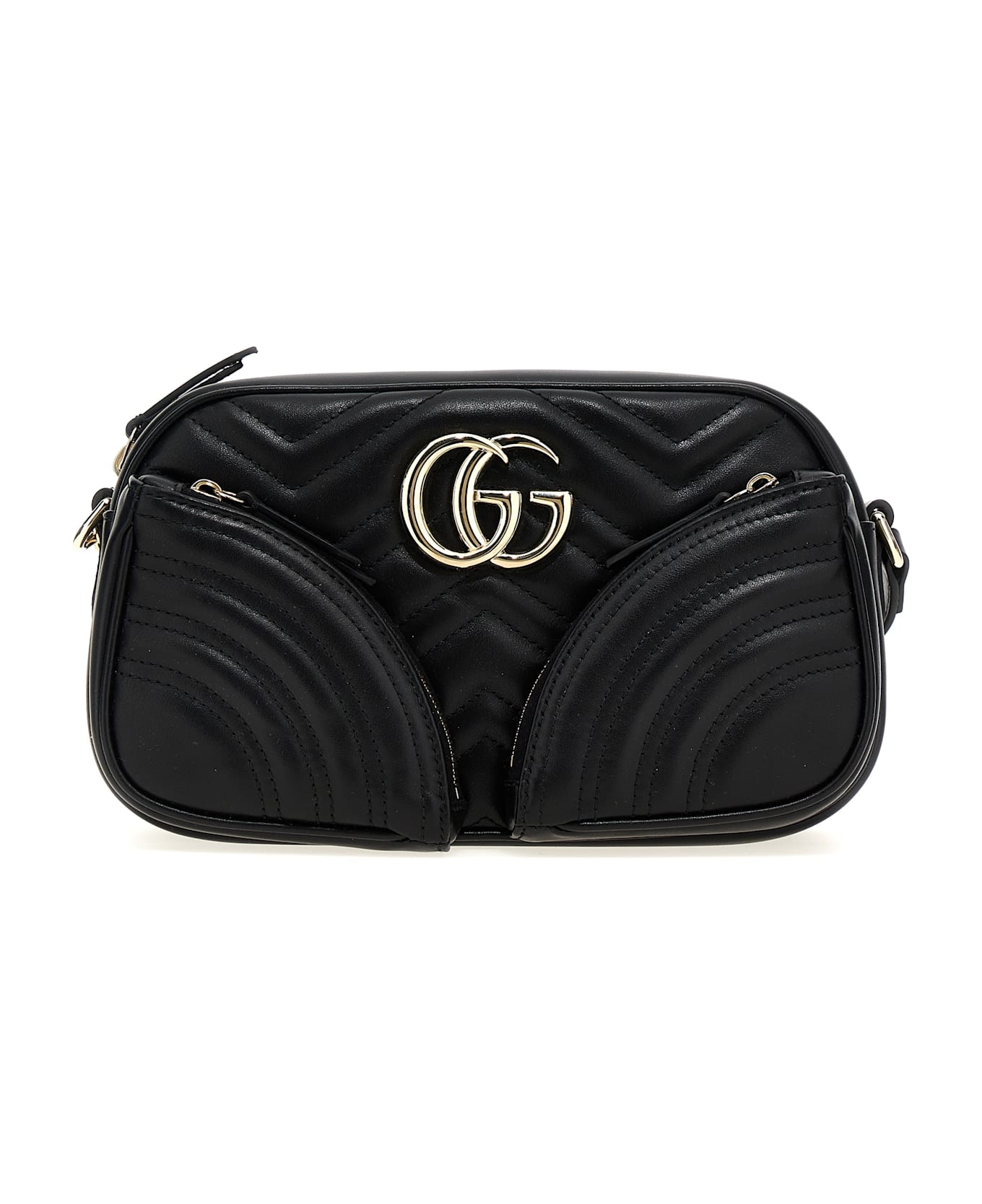 Small 'GG Marmont' shoulder bag in chevron matelassé leather, exterior zip pockets, front metal logo appliqué, zip closure, adjustable leather and chain shoulder strap. Composition: 100% calfskin leather (Bos Taurus)