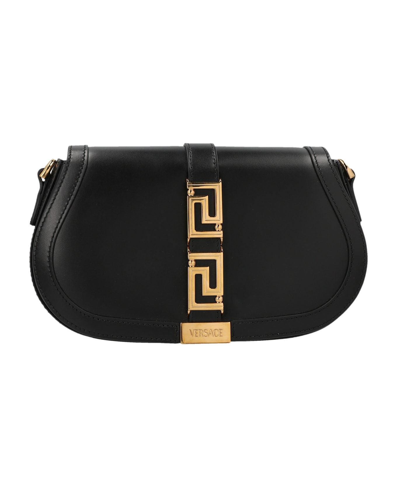 Greca Plexiglas' leather shoulder bag with metal chain element with central Greek, chain shoulder strap with leather shoulder strap, removable and adjustable leather shoulder strap and a snap button magnetic closure. Composition: 100% calf leather (bos taurus)