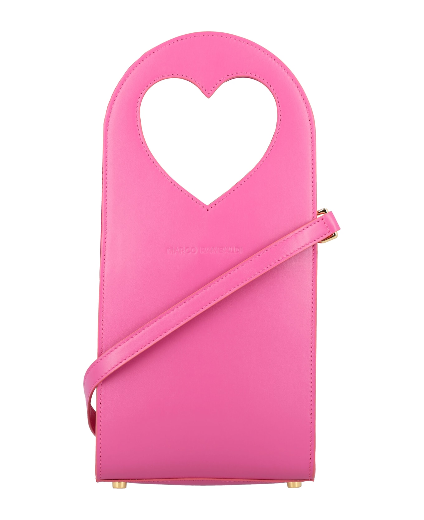 Leather Heart Handle Bag By Marco Rambaldi. Featuring: Heart Shaped Handles Magnetic Closure Adjustable And Removable Shoulder Strap Debossed Logo Gold-tone Metal Finish Width: 16,5 Cm Height With Handle: 34 Cm Depth: 7 Cm